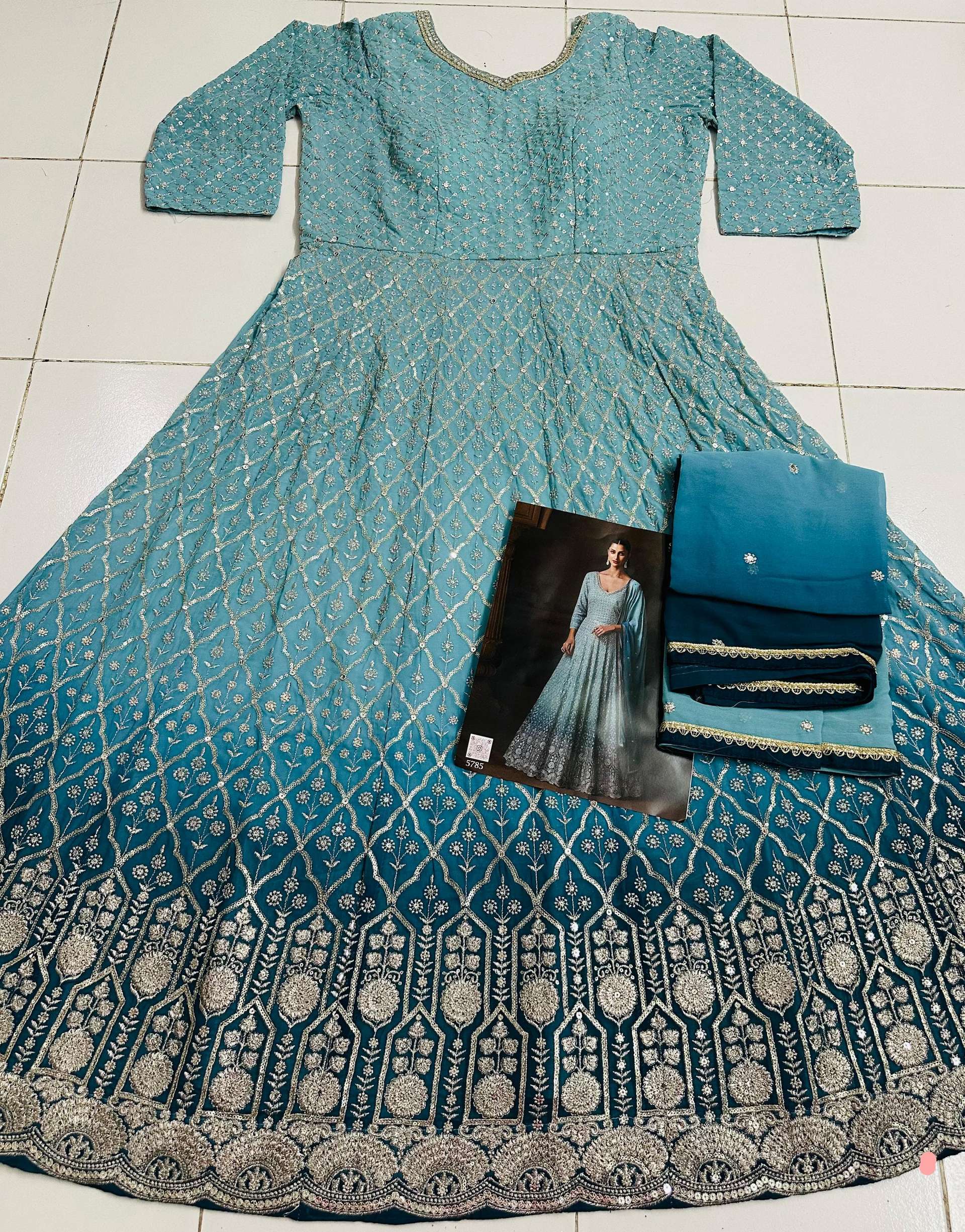 Aarshi Fashions Light Blue Georgette Heavy Embroidery Wedding Gown