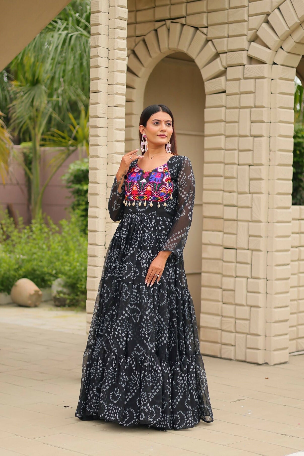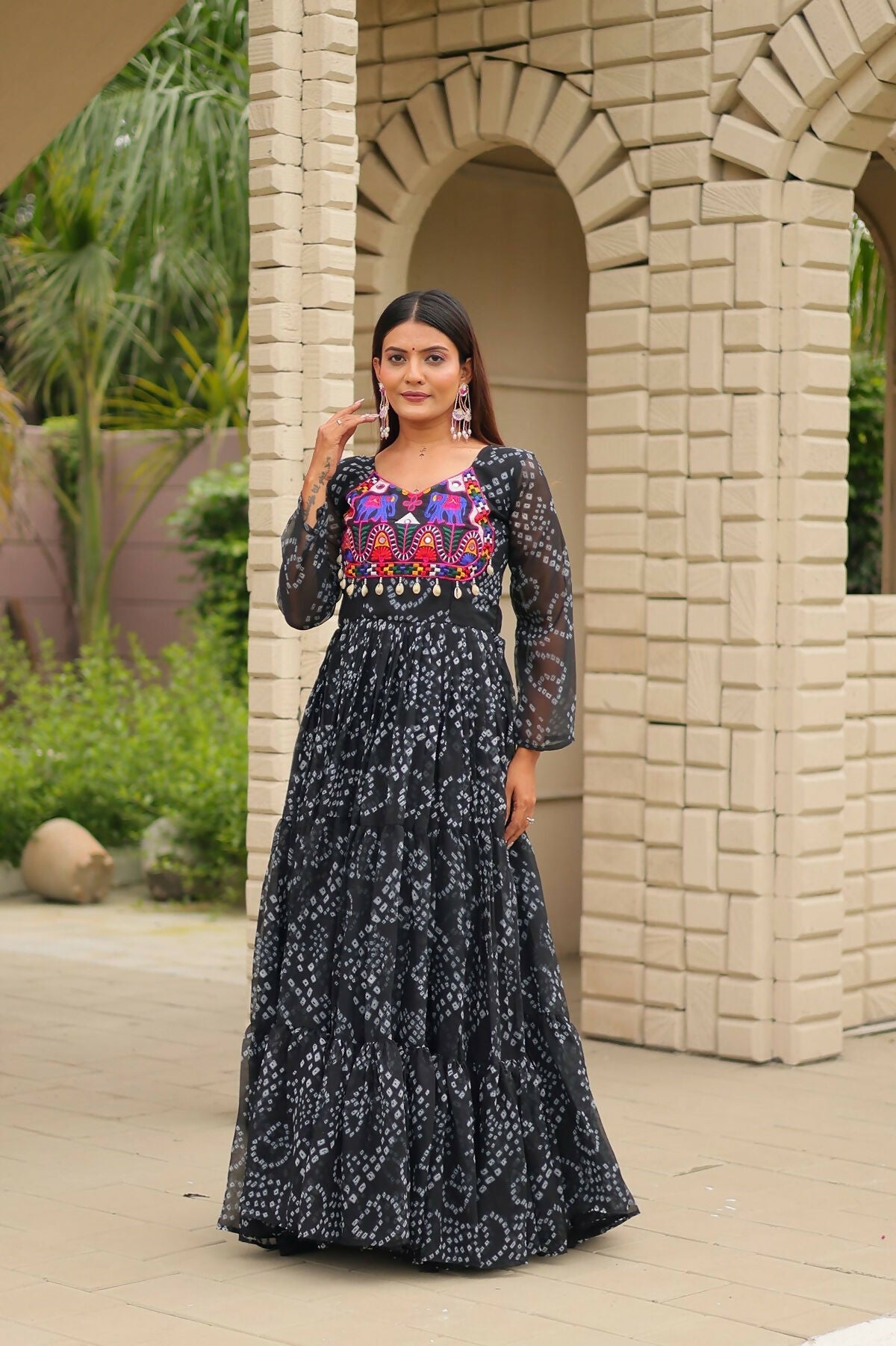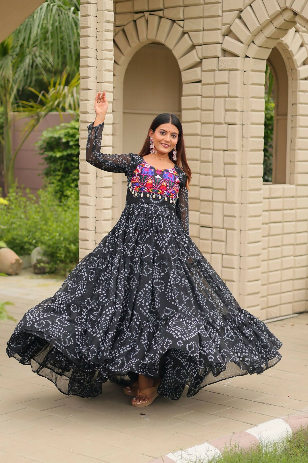 Aastha Fashion Black Faux Georgette Navratri Designer Gown Collection