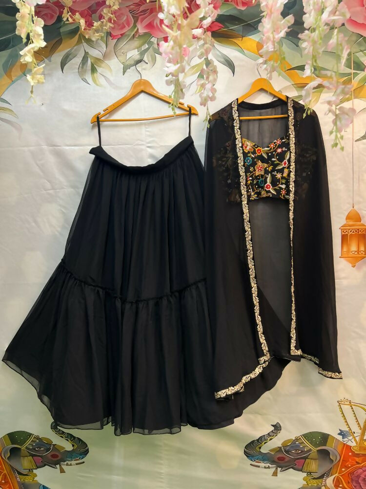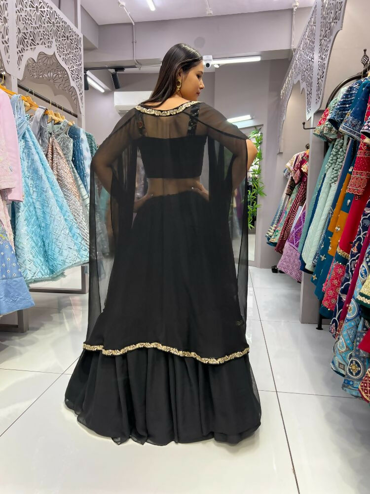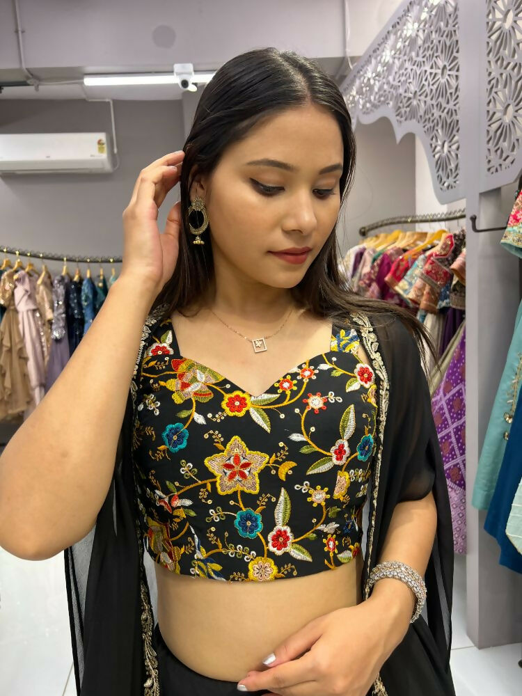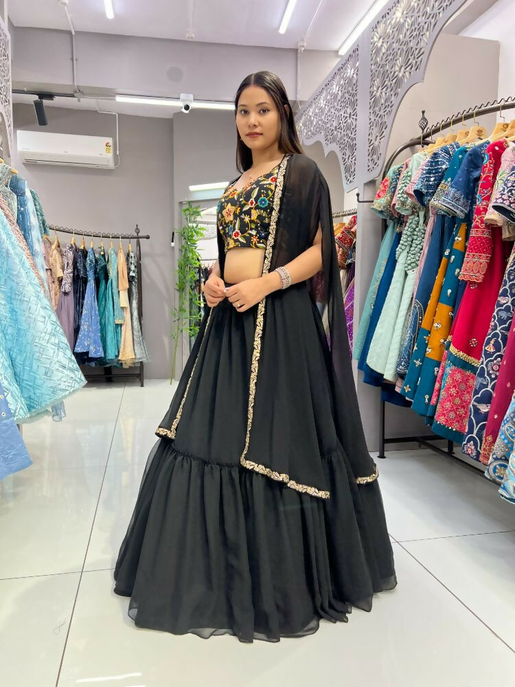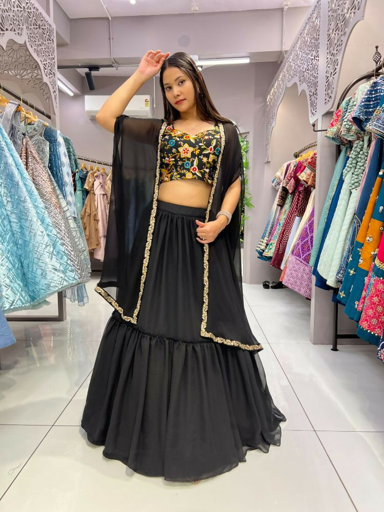 Aastha Fashion Black Heavy Georgette Pleated Semi Stitched Wedding Wear Lehenga Choli