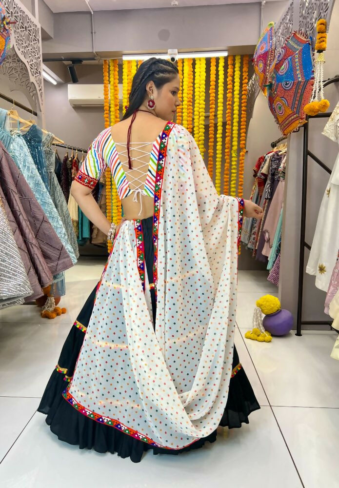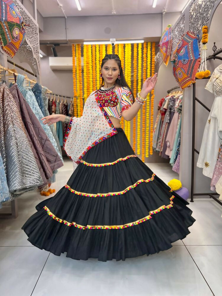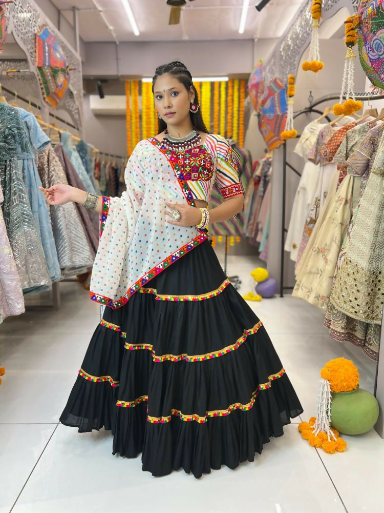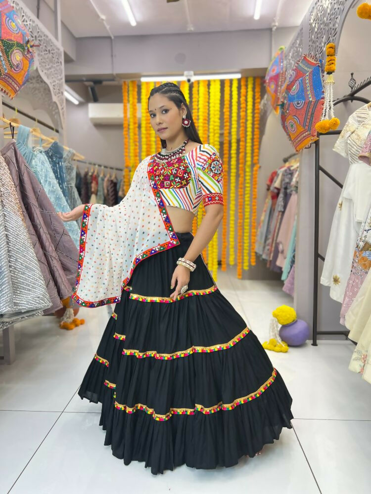 Aastha Fashion Black Rayon Readymade Lace Semi Stitched Wedding Wear Lehenga Choli