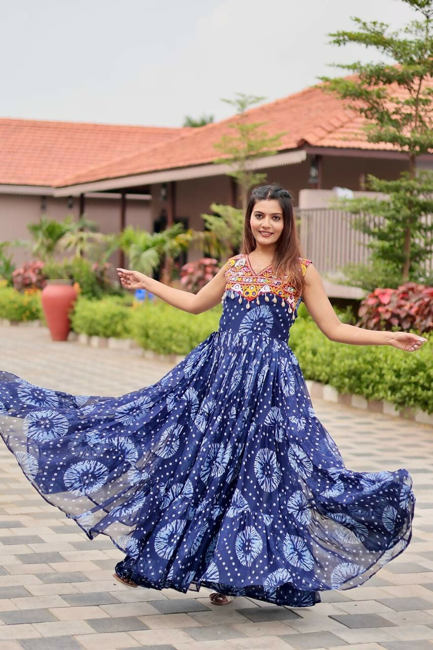 Aastha Fashion Blue Faux Georgette Navratri Designer Gown Collection