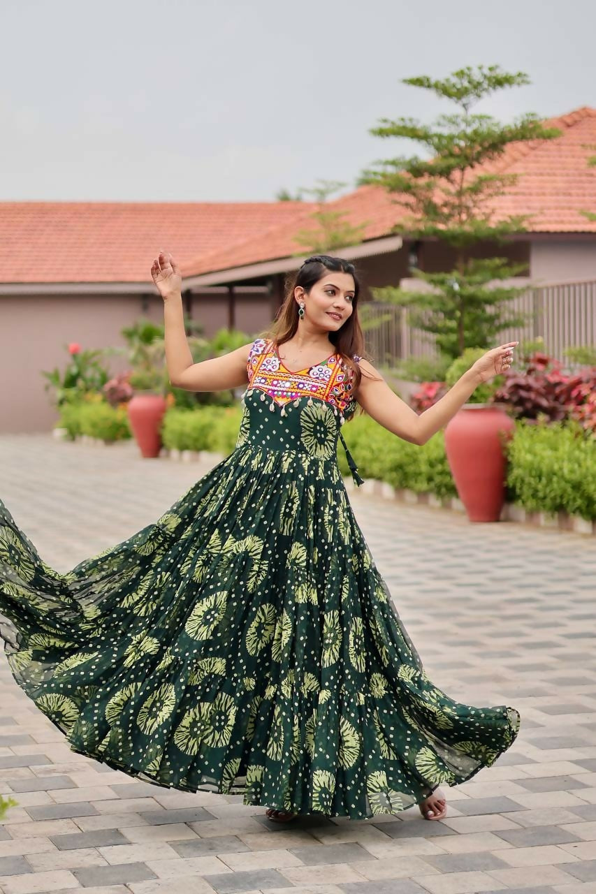 Aastha Fashion Green Faux Georgette Navratri Designer Gown Collection