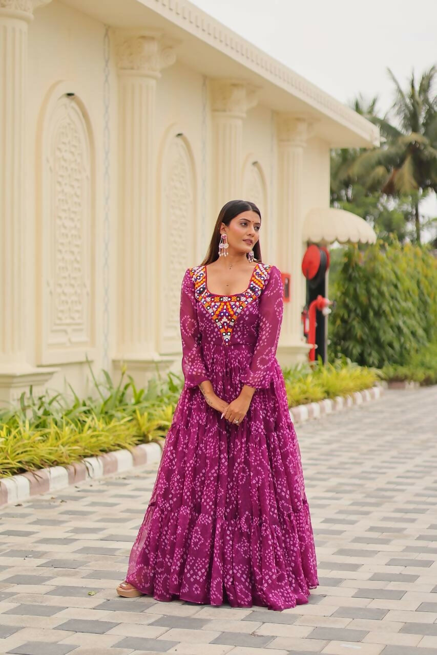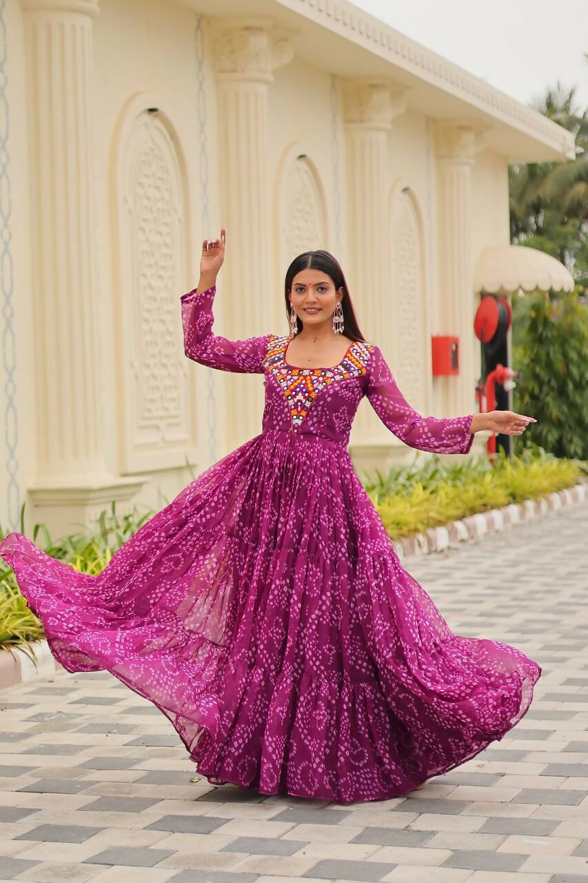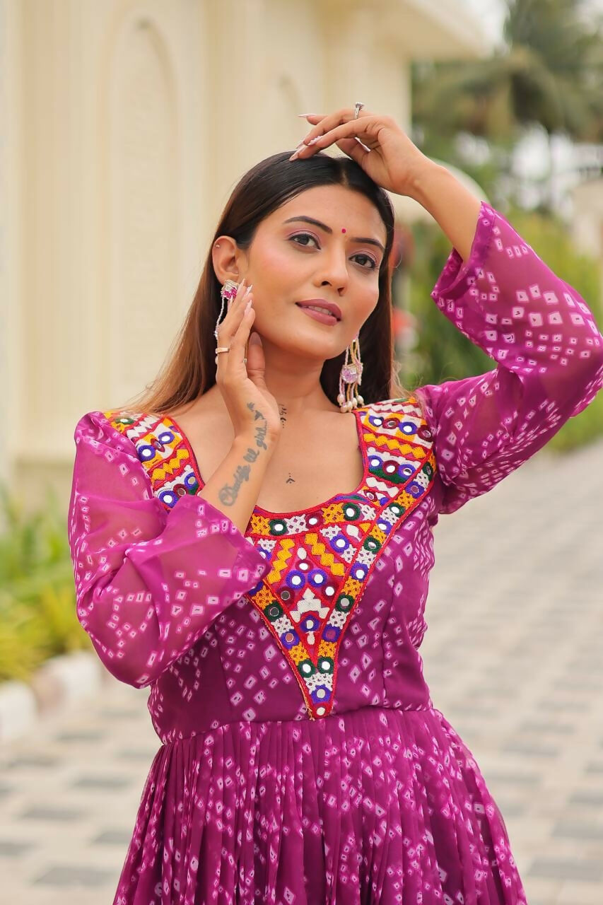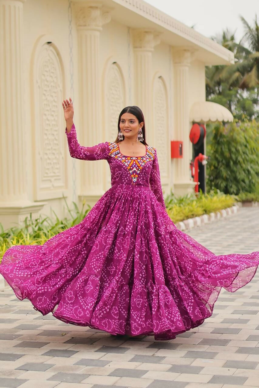 Aastha Fashion Magenta Faux Georgette Navratri Designer Gown Collection