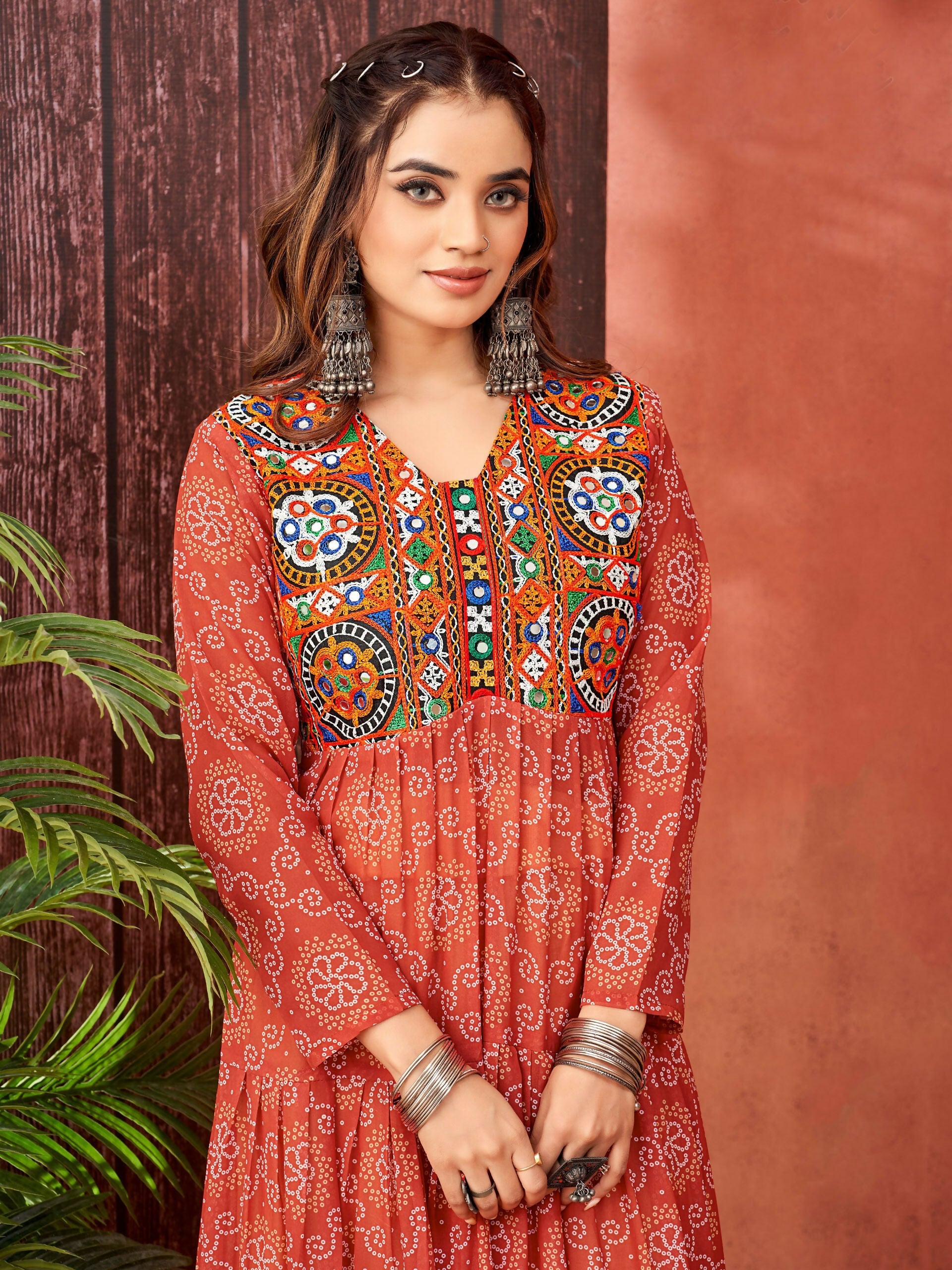 Aastha Fashion Maroon Red Faux Blooming Georgette Glamorous Festival Wear Designer Navratri Gown Collection