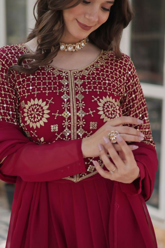 Aastha Fashion Pink Faux Blooming Embroidery Work Party Wear Designer Gown