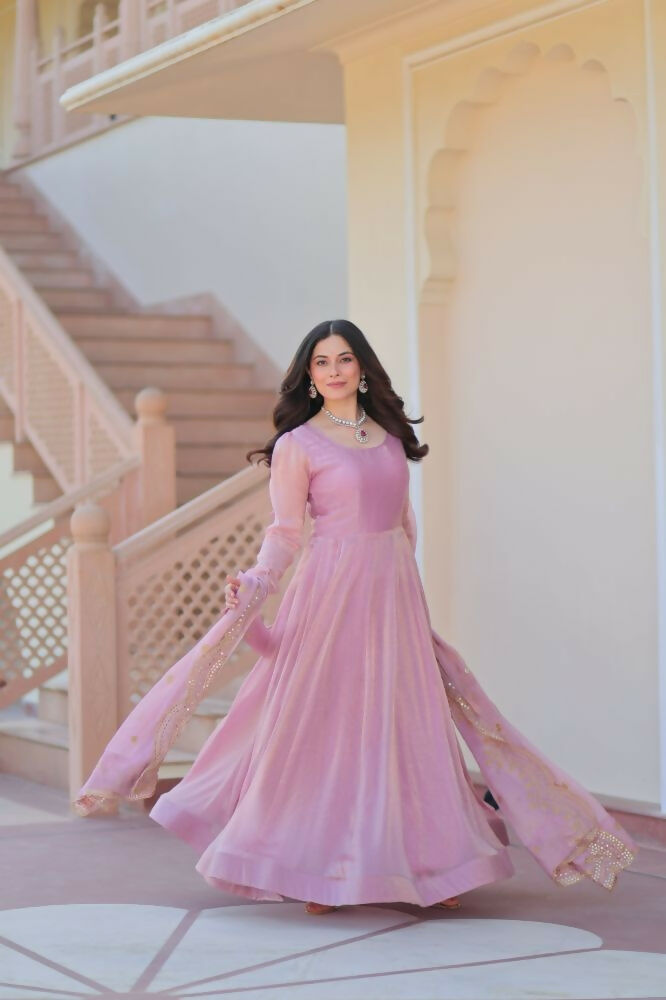 Aastha Fashion Pink Fendy Chiffon 12 Kali Stitched Party Wear Designer Gown