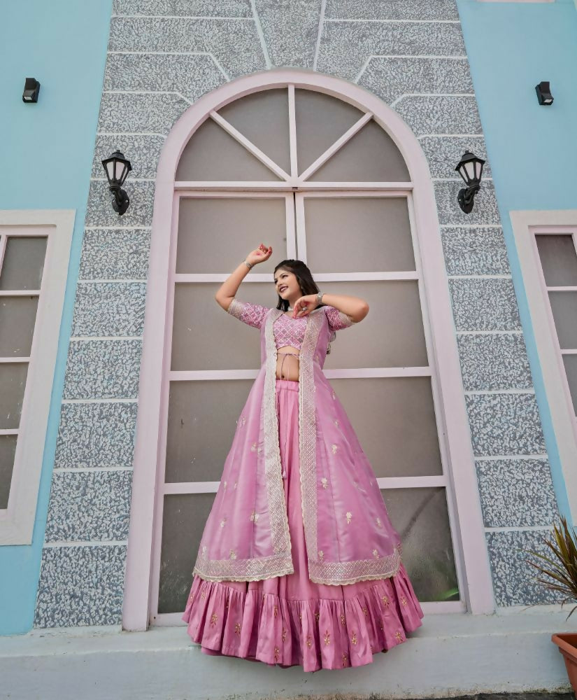Aastha Fashion Pink Heavy Joya Silk Heavy Embroidery Zari Semi Stitched Wedding Wear Lehenga Choli
