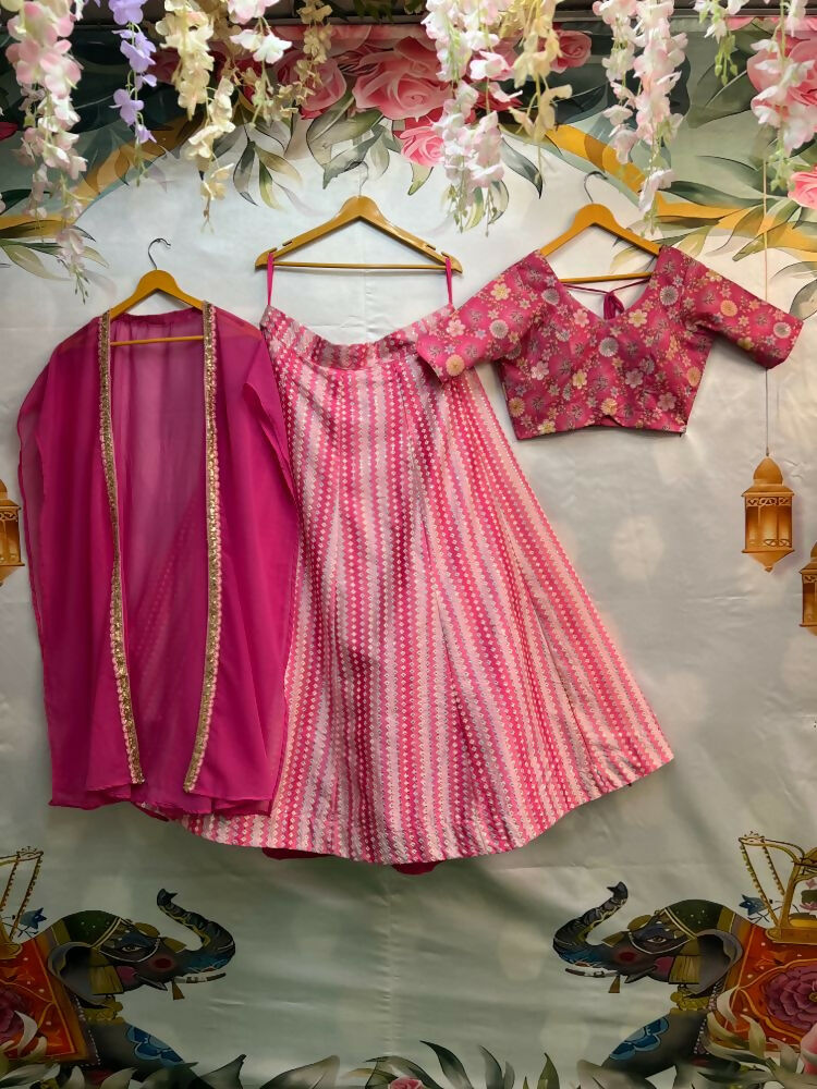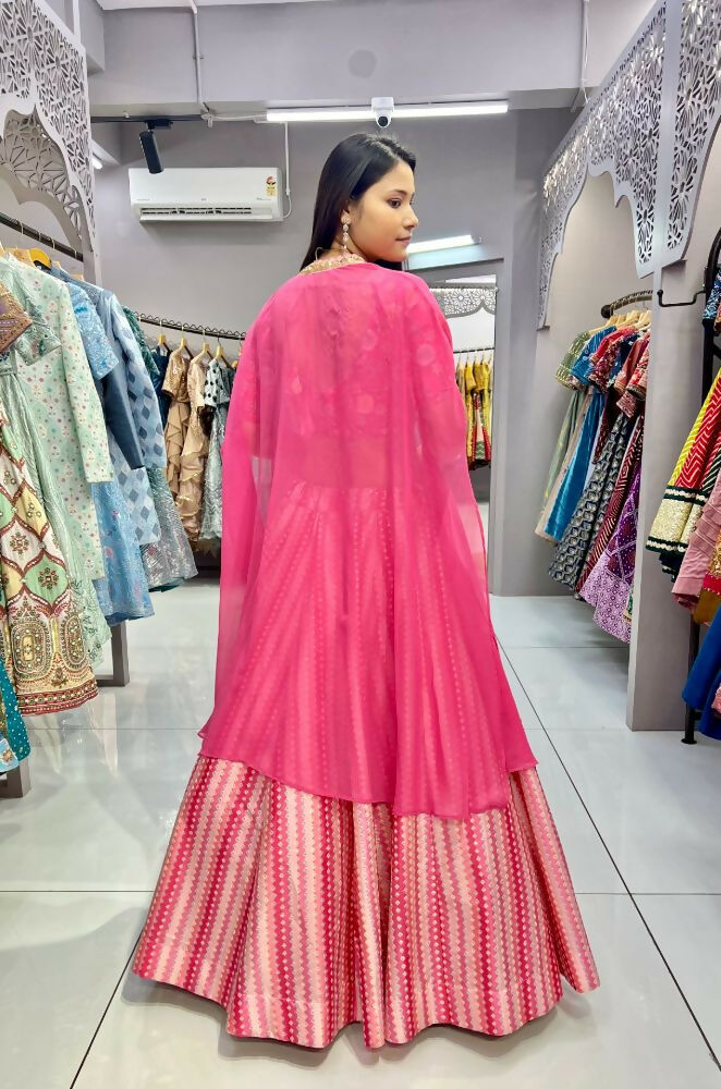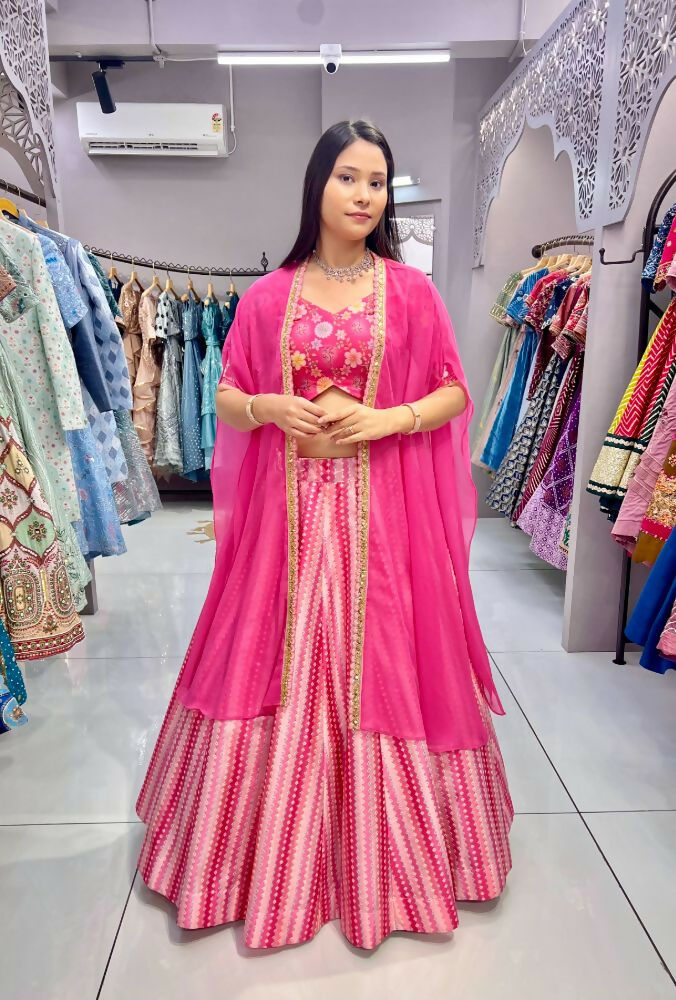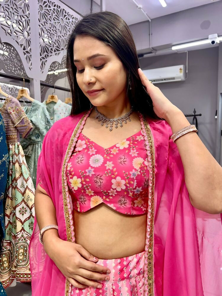 Aastha Fashion Pink Slub Silk Embroidery Thread / Sequence Work + Digital Print Semi Stitched Wedding Wear Lehenga Choli
