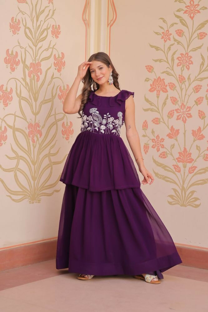 Aastha Fashion Purple Faux Blooming Beads Embroidered work Party Wear Designer Gown