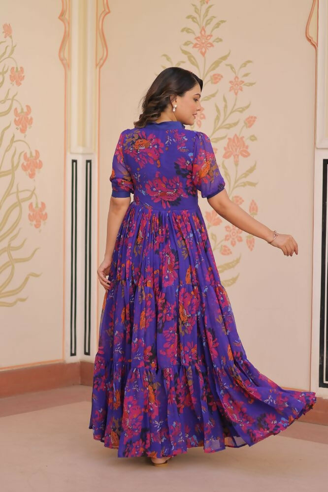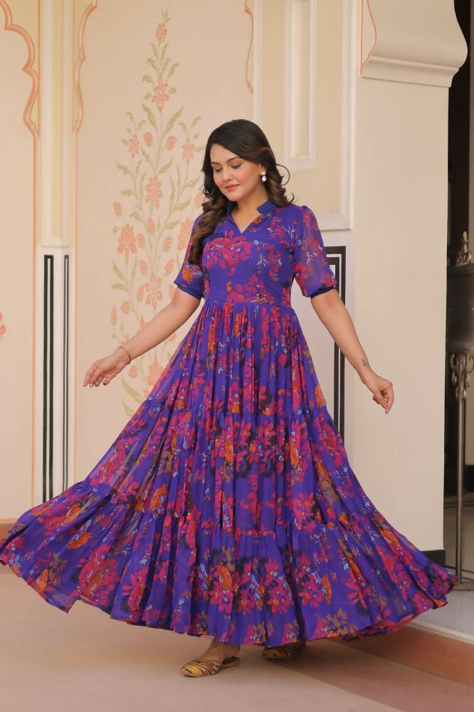 Aastha Fashion Purple Faux Georgette Printed Party Wear Designer Gown