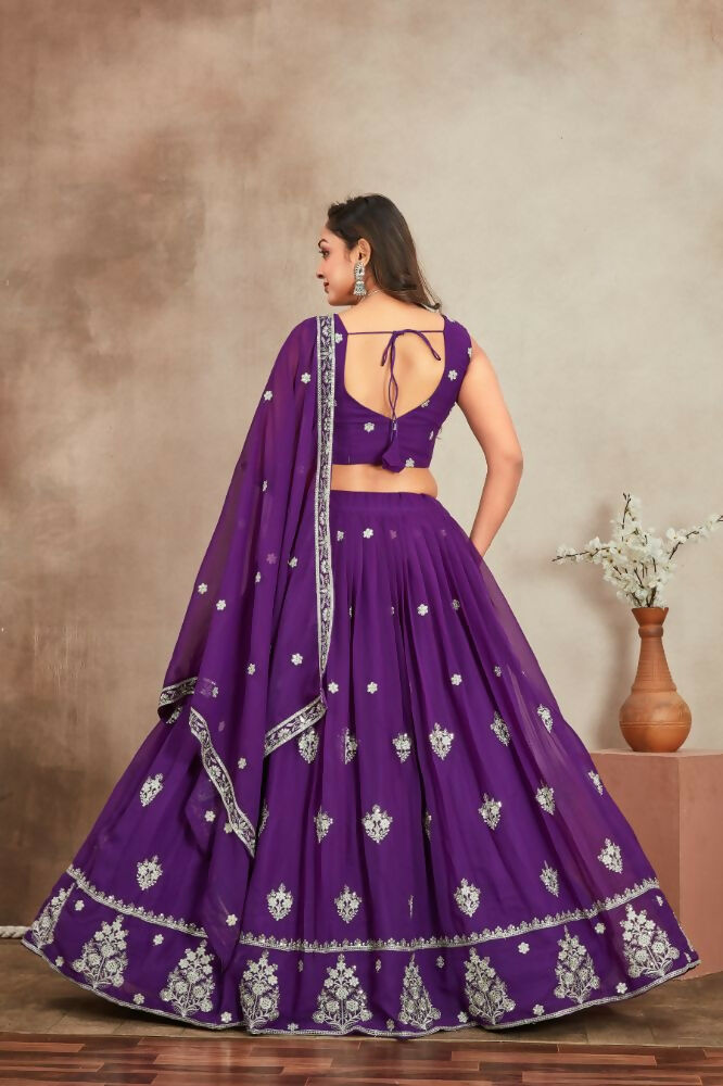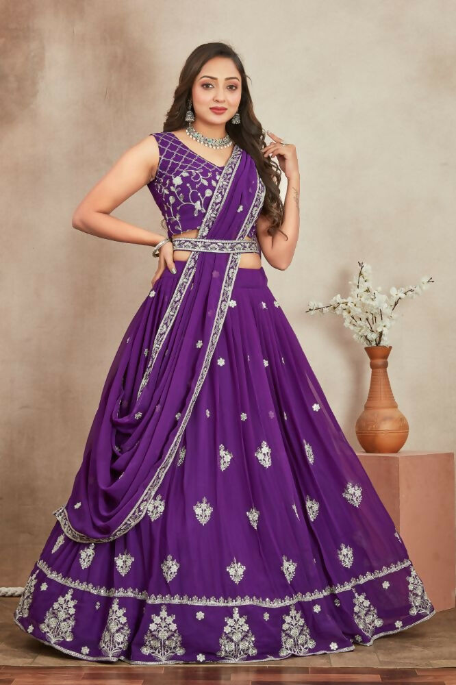 Aastha Fashion Purple Heavy Georgette Embroidery Zari / Sequence Work Semi Stitched Wedding Wear Lehenga Choli