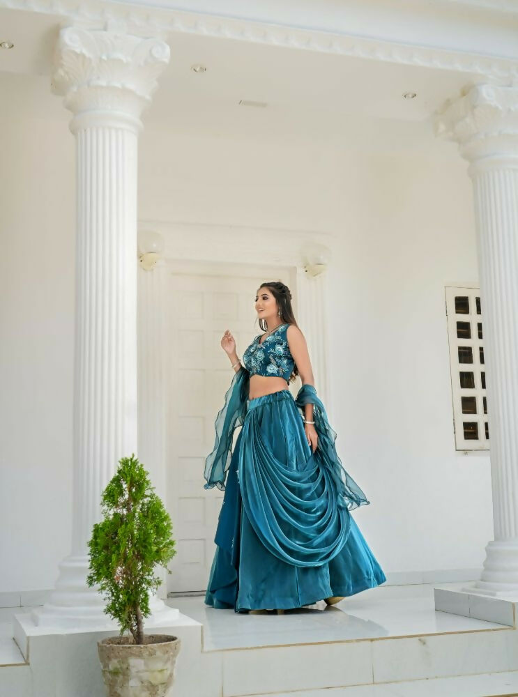 Aastha Fashion Rama Jimmy Choo Heavy Embroidery Zari + Thread + Sequence Work Semi Stitched Wedding Wear Lehenga Choli