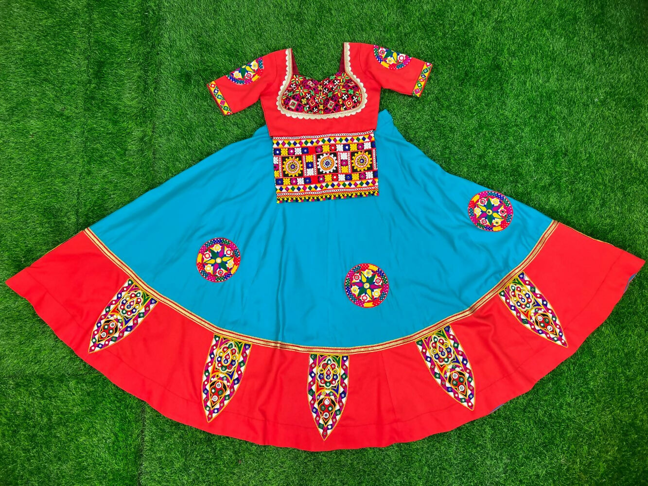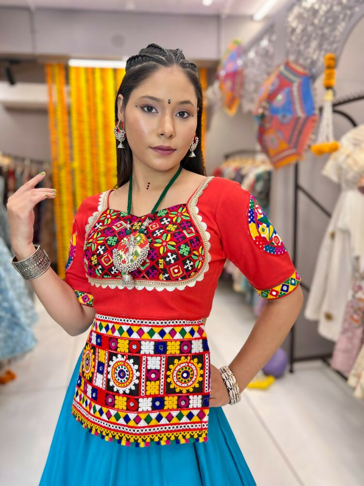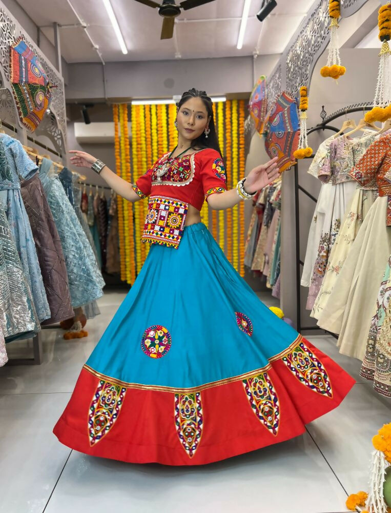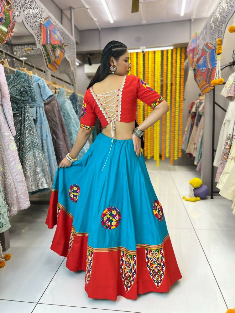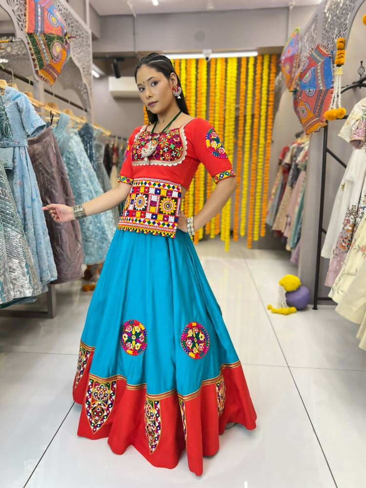 Aastha Fashion Rama Roman Silk Real Mirror Gamthi Work Patch + Readymade Lace Semi Stitched Wedding Wear Lehenga Choli