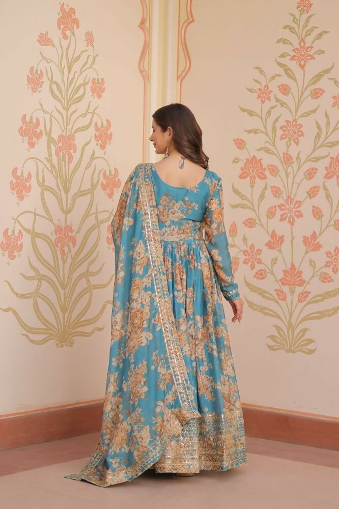 Aastha Fashion Rama Russian Silk Digital Print With Embroidered Sequins Work Party Wear Designer Gown