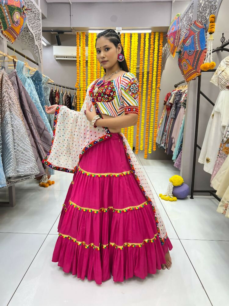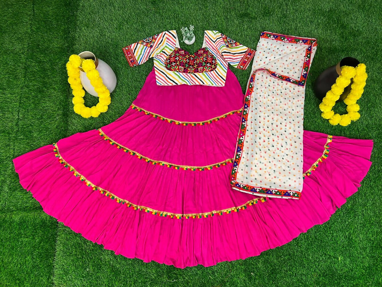 Aastha Fashion Rani Rayon Readymade Lace Semi Stitched Wedding Wear Lehenga Choli