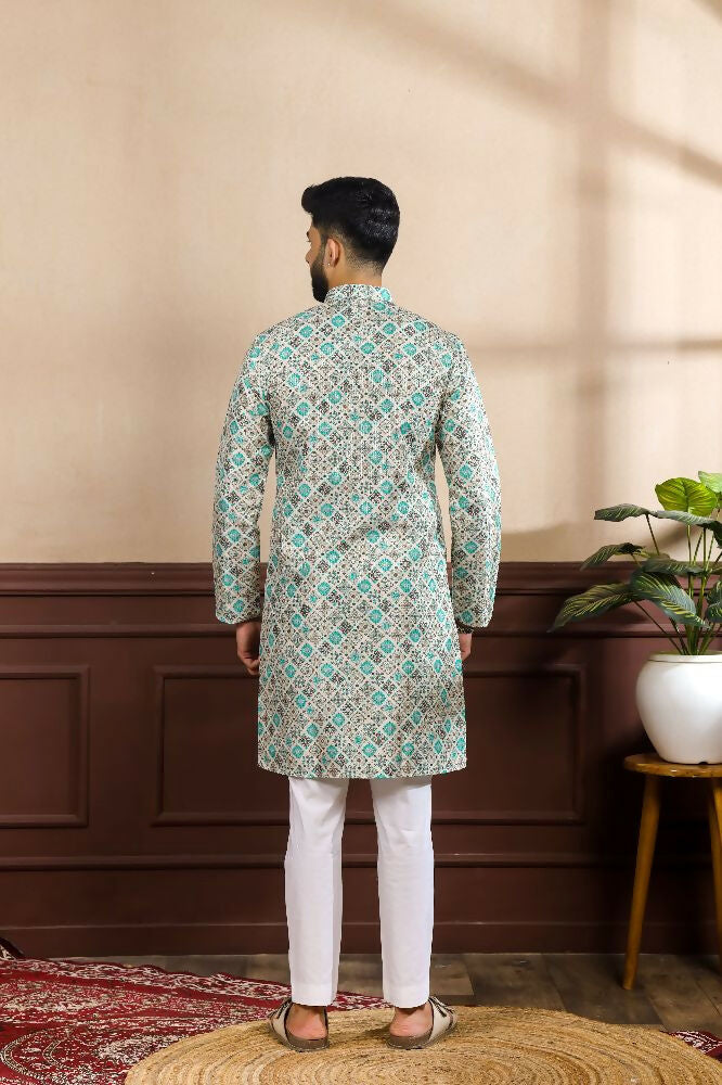 Blue Art Silk Digital Printed, Embroidery Work Kurta Set - Mahotsav