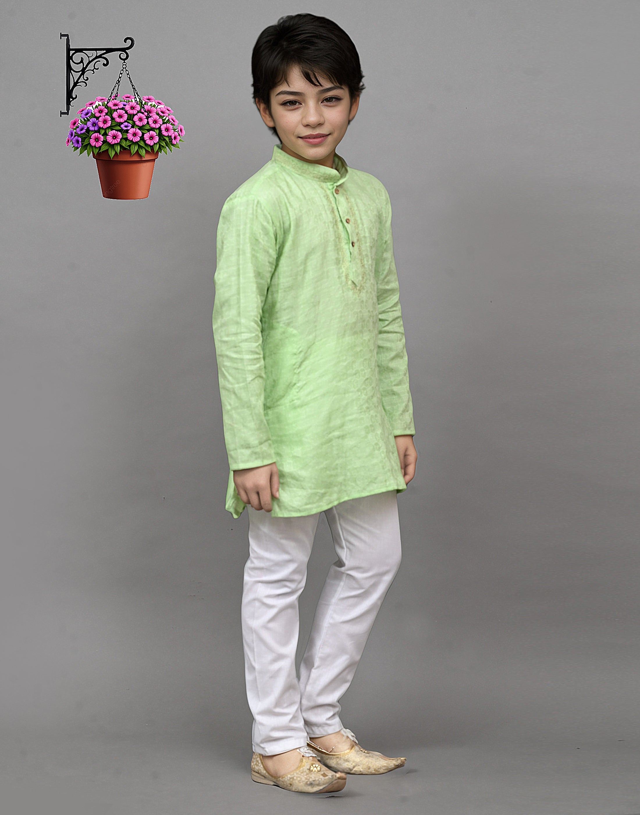 Bluesaanchi Lime Green Self-Design Embroidered Kurta Set – Playful & Festive for Your Little One
