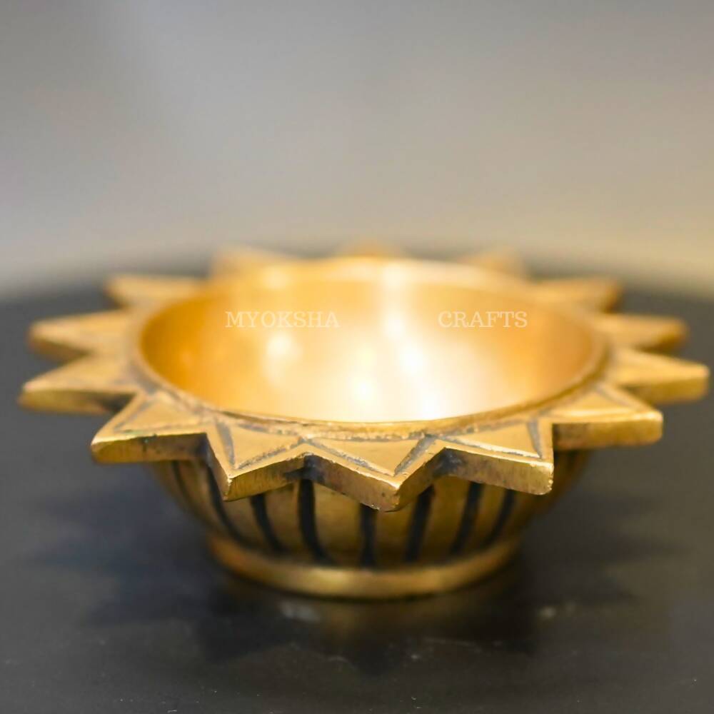 - Introducing our Solar Radiance: Brass Surya Diya, a celestial masterpiece that combines artistic design with practical elegance, creating a luminous focal point for your living space.