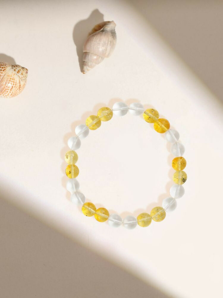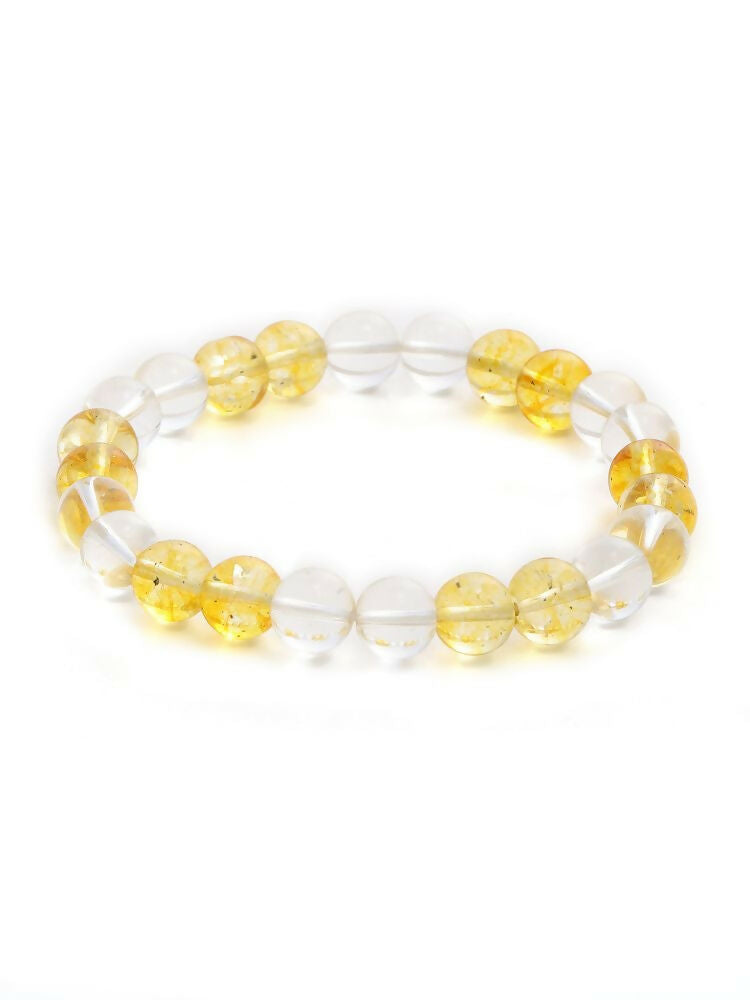 Clear Quartz & Citrine Yellow and White Beads Bracelet - Ruby Raang