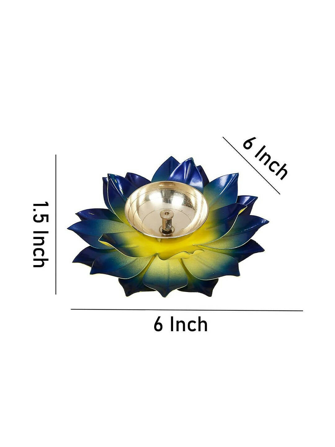 CraftVatika Blue Lotus Hand Painted Diya Metal