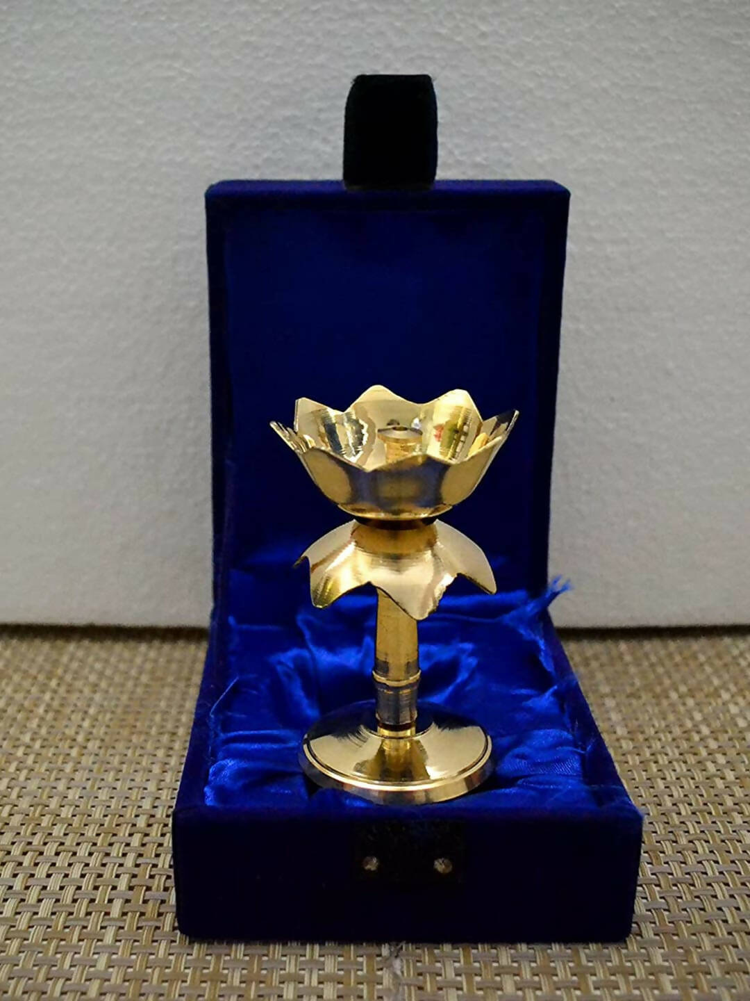 Craftvatika Gold Tone Brass Lotus Shape Pillar Diya Oil Lamp