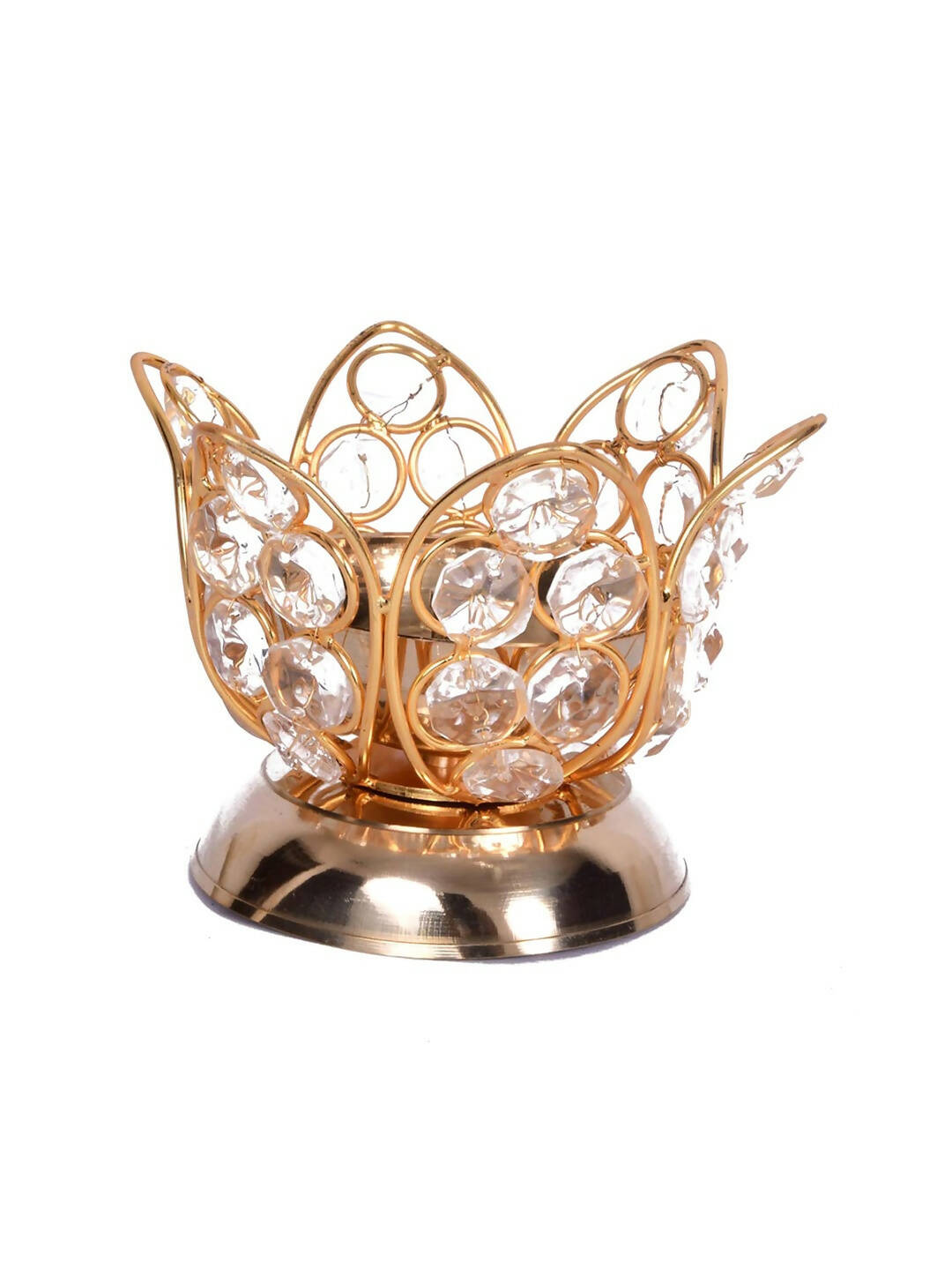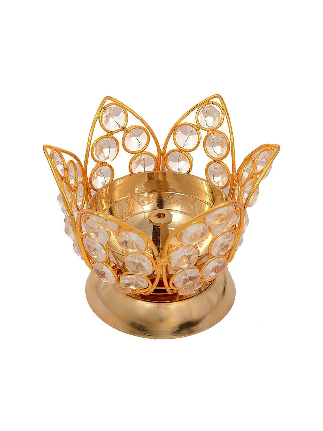 CraftVatika Gold Toned Crystal Lotus Shaped Diya