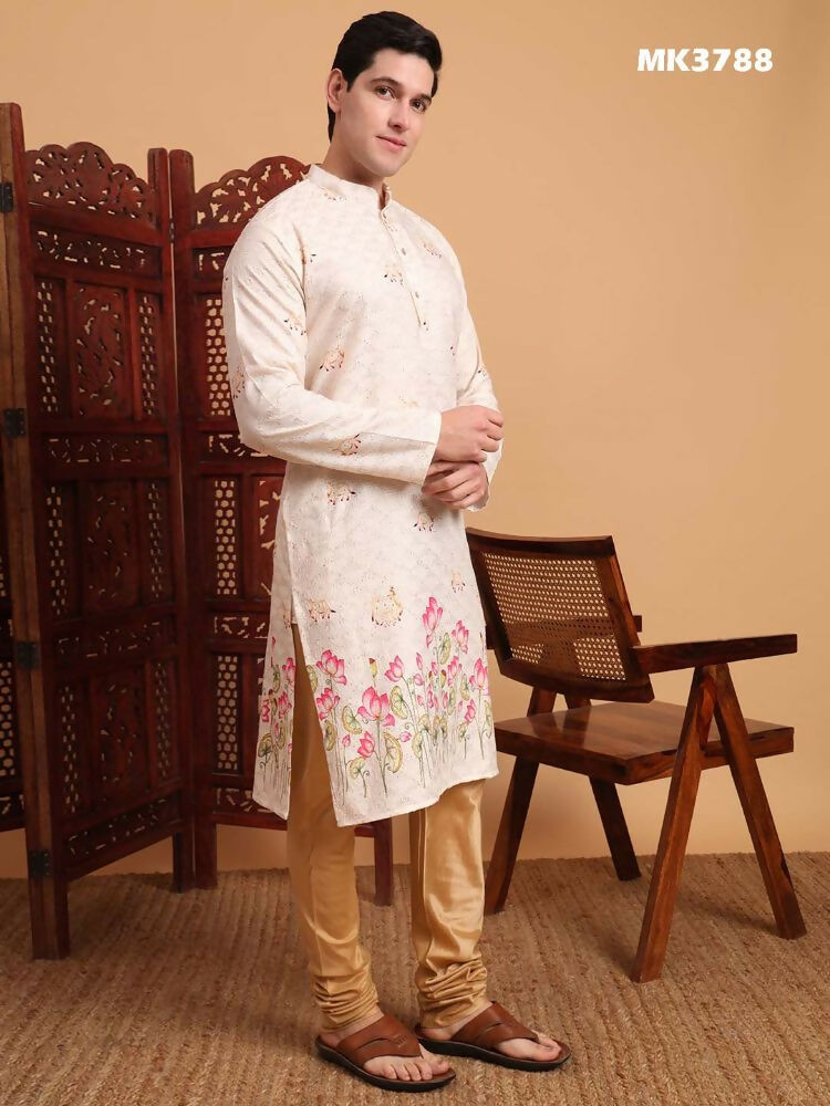 Cream Cotton Printed Chikankari Embroidery Work Kurta - Mahotsav