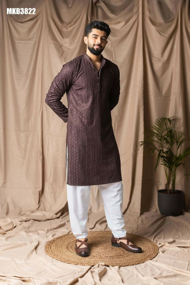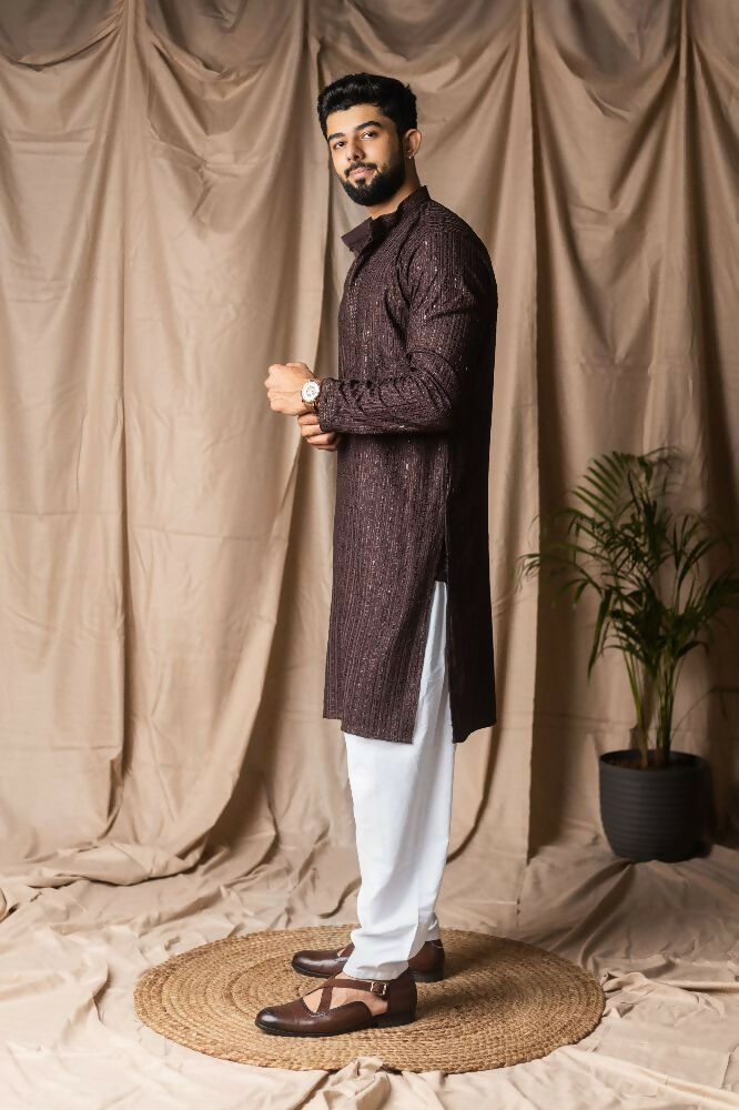 Dark Brown Rayon Thread Embroidery Work Kurta Set - Mahotsav