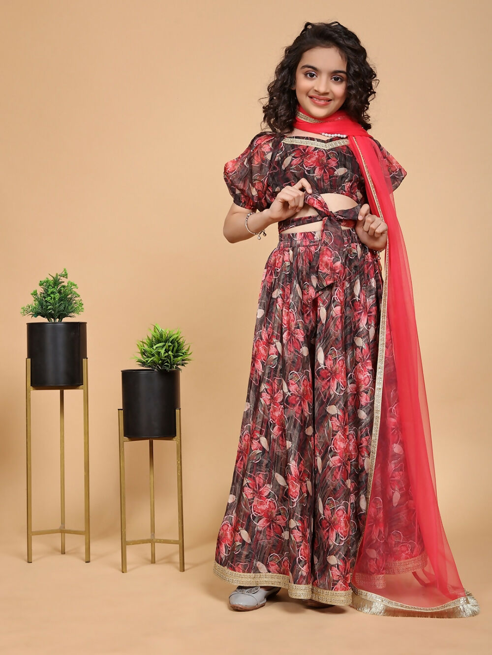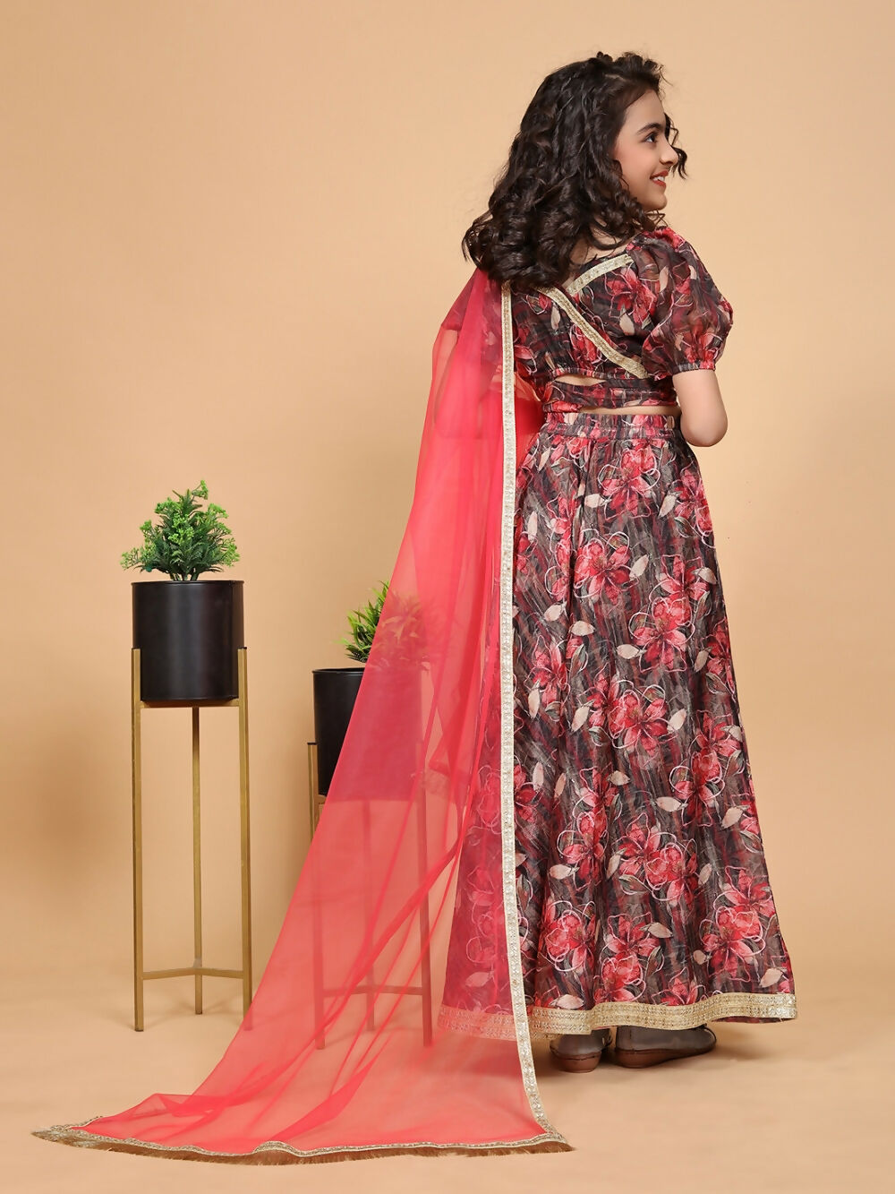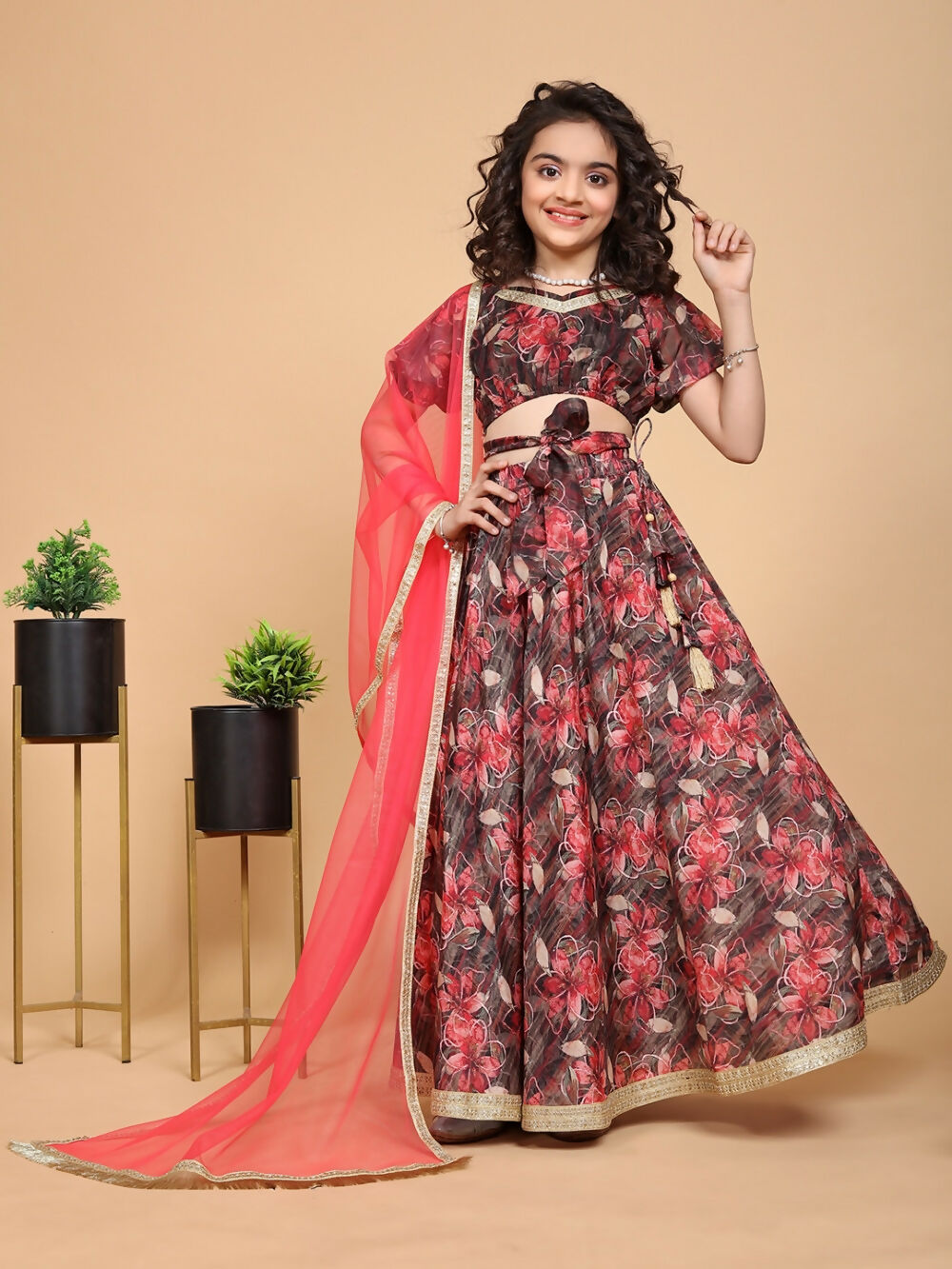 Divine Drape Girls Chinon Maroon Printed Kids Lehenga Choli With Dupatta