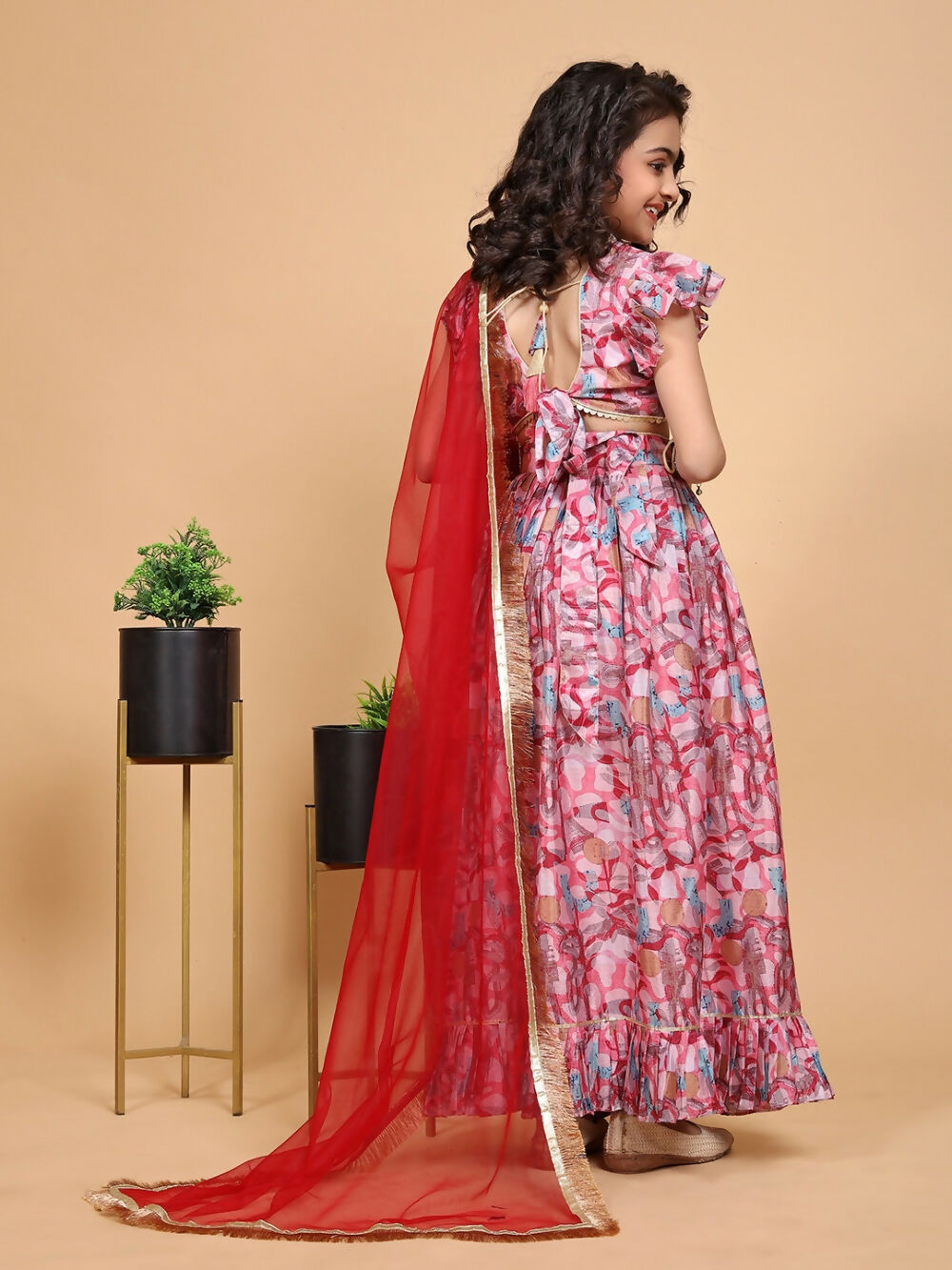 Divine Drape Girls Chinon Pink Printed Kids Lehenga Choli With Dupatta