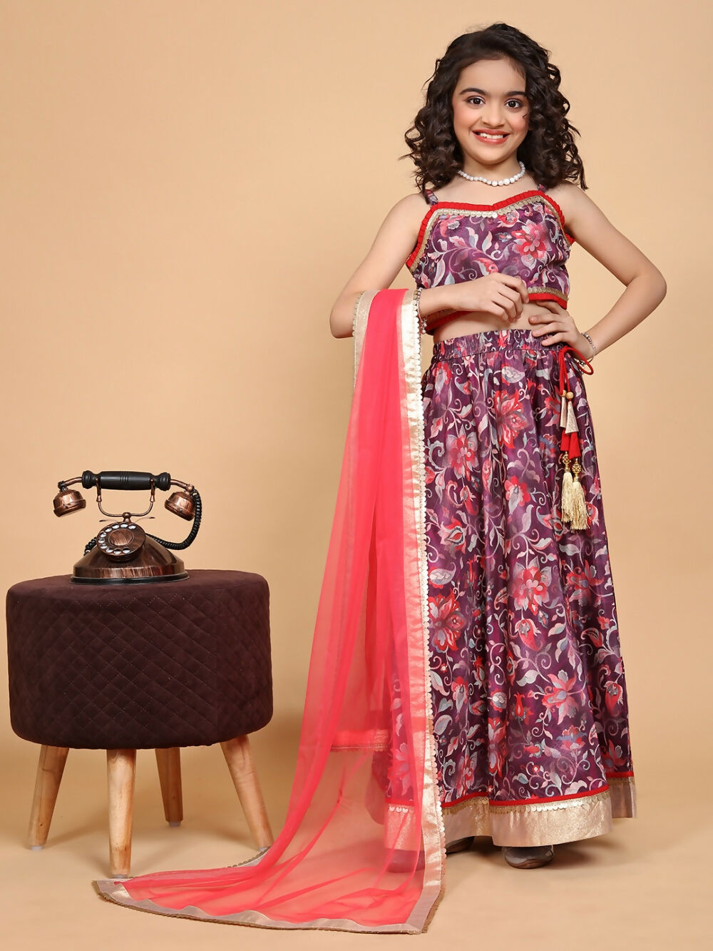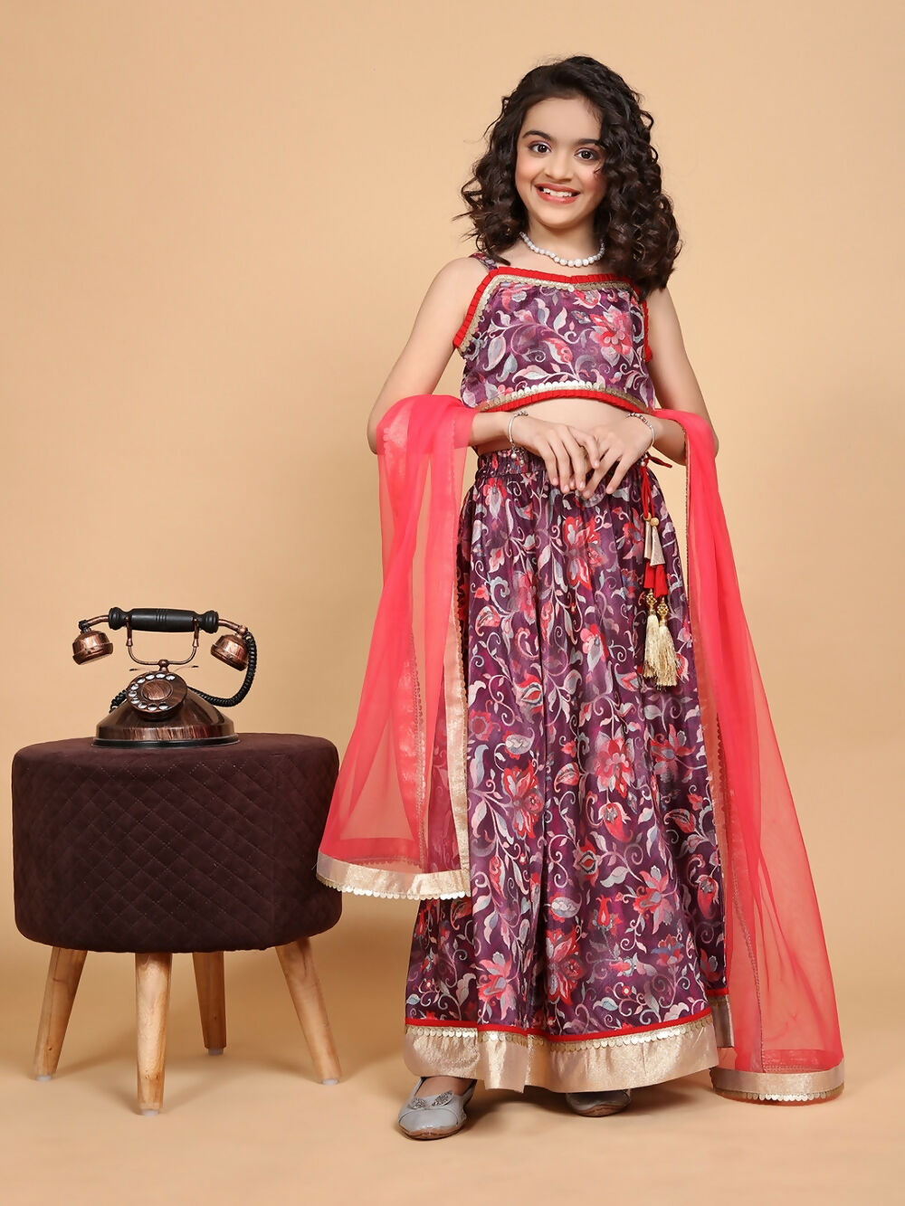 Divine Drape Girls Chinon Purple Printed Kids Lehenga Choli With Dupatta