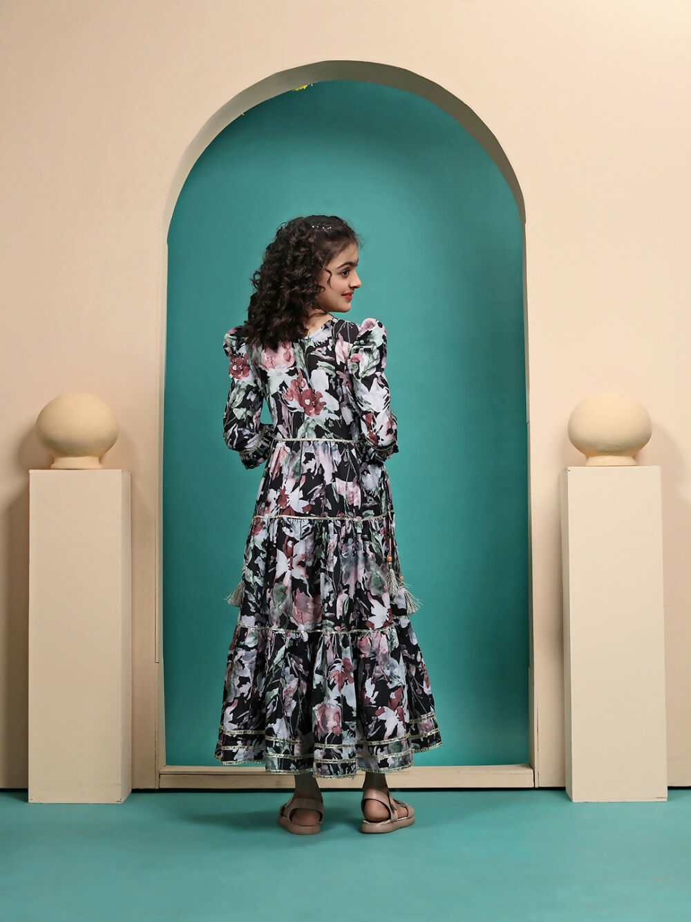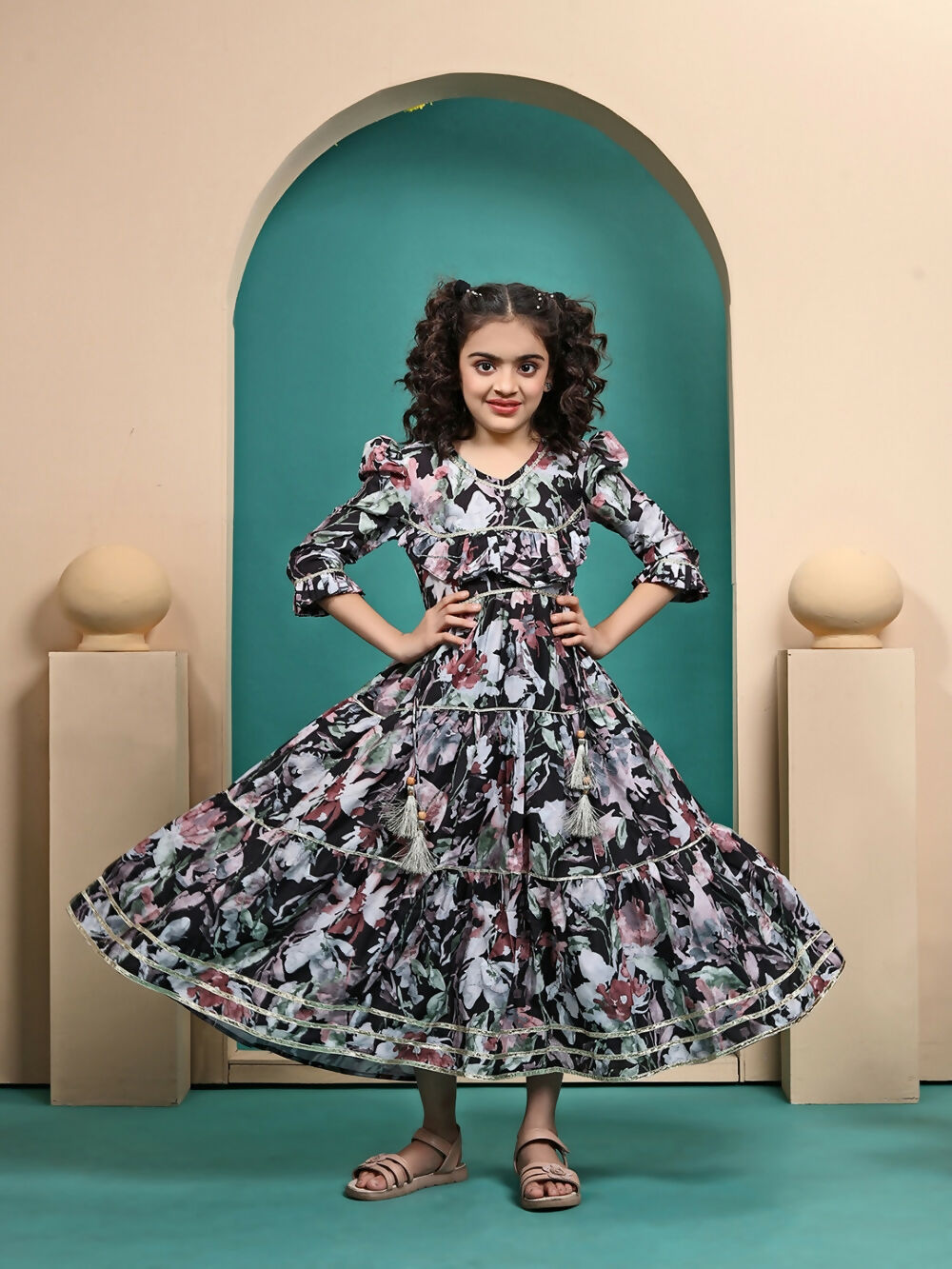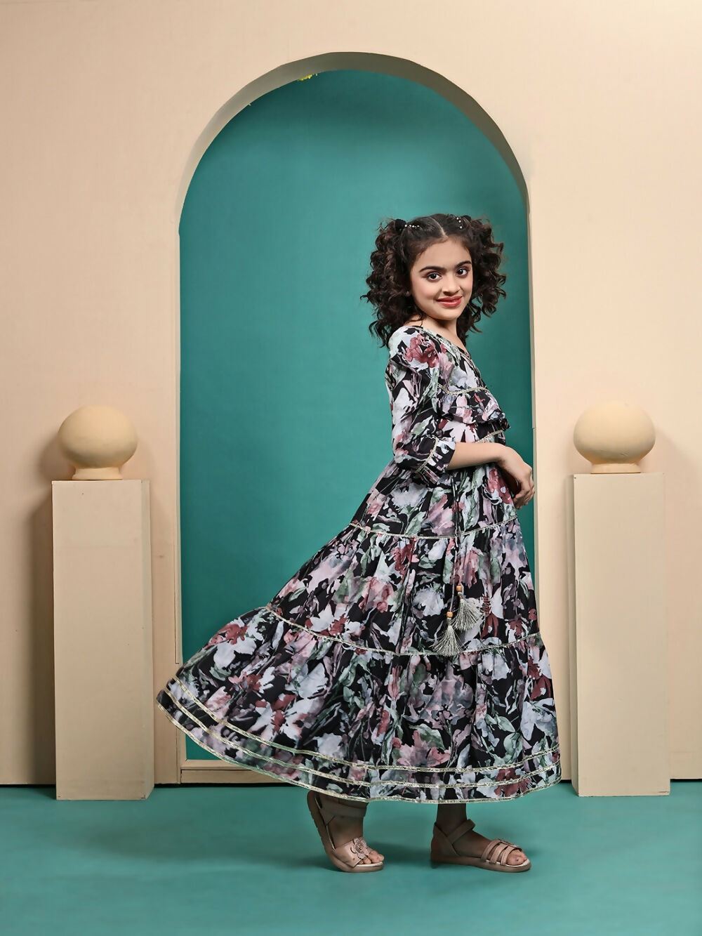 Divine Drape Girls Muslin Black Printed Kids Anarkali Gown