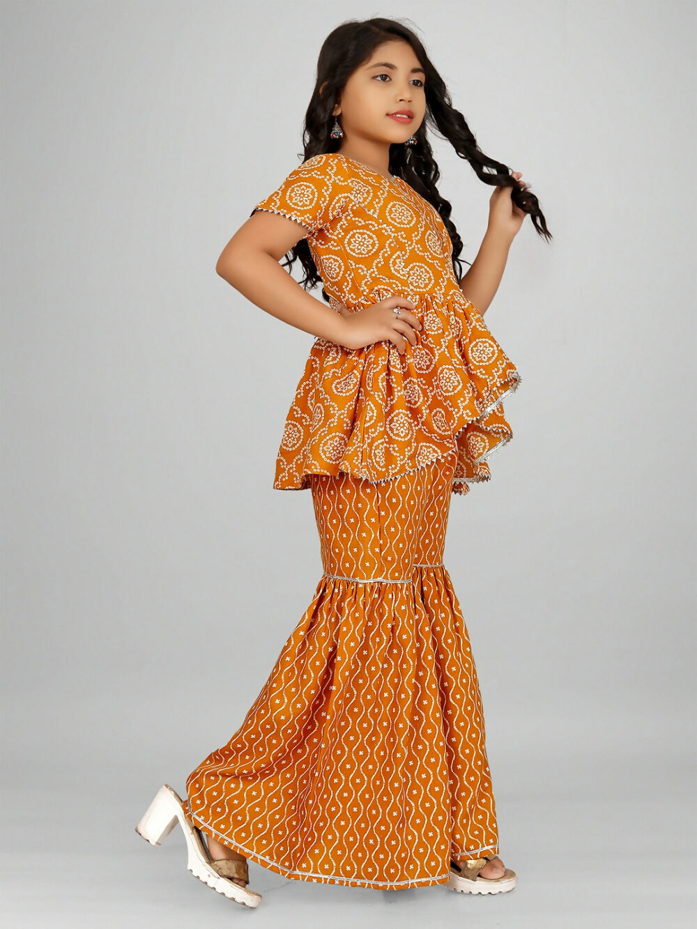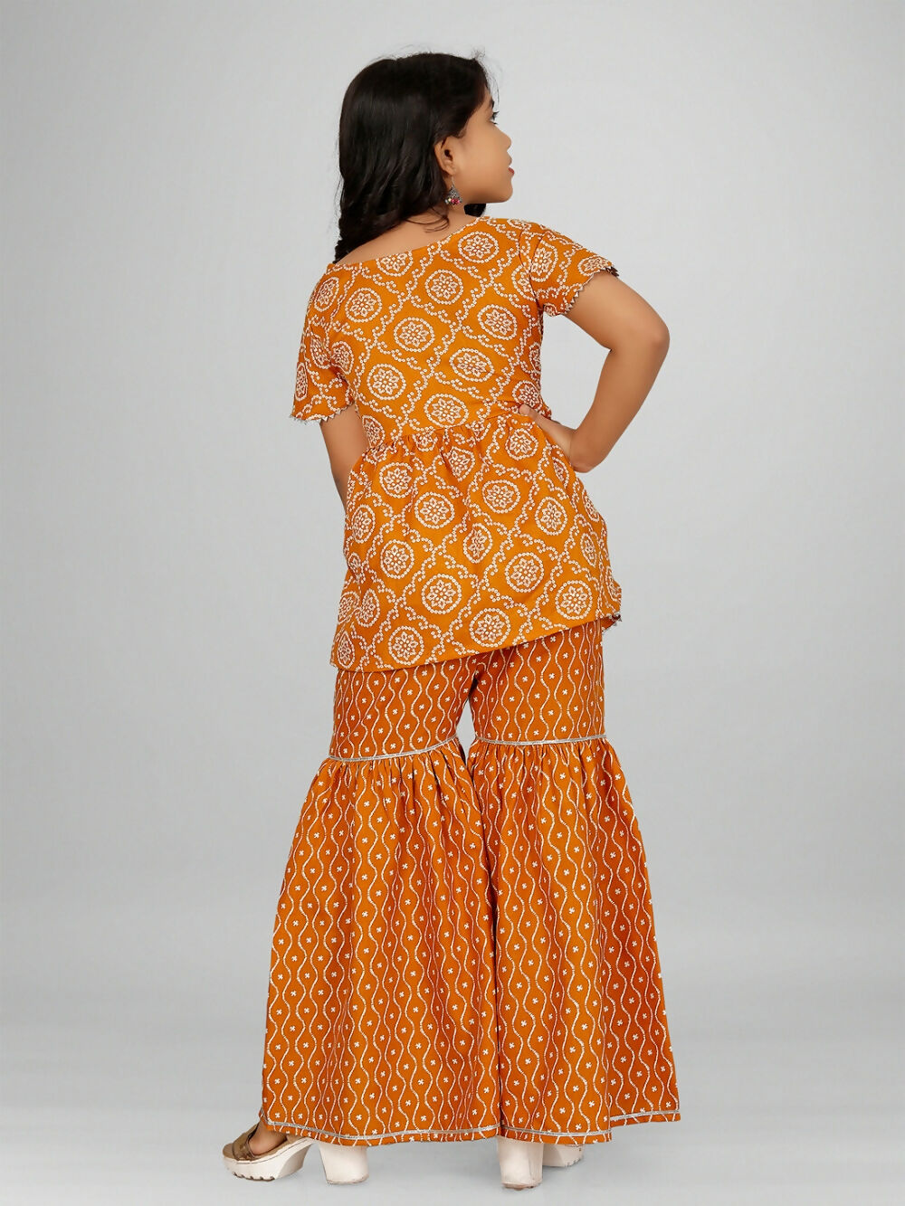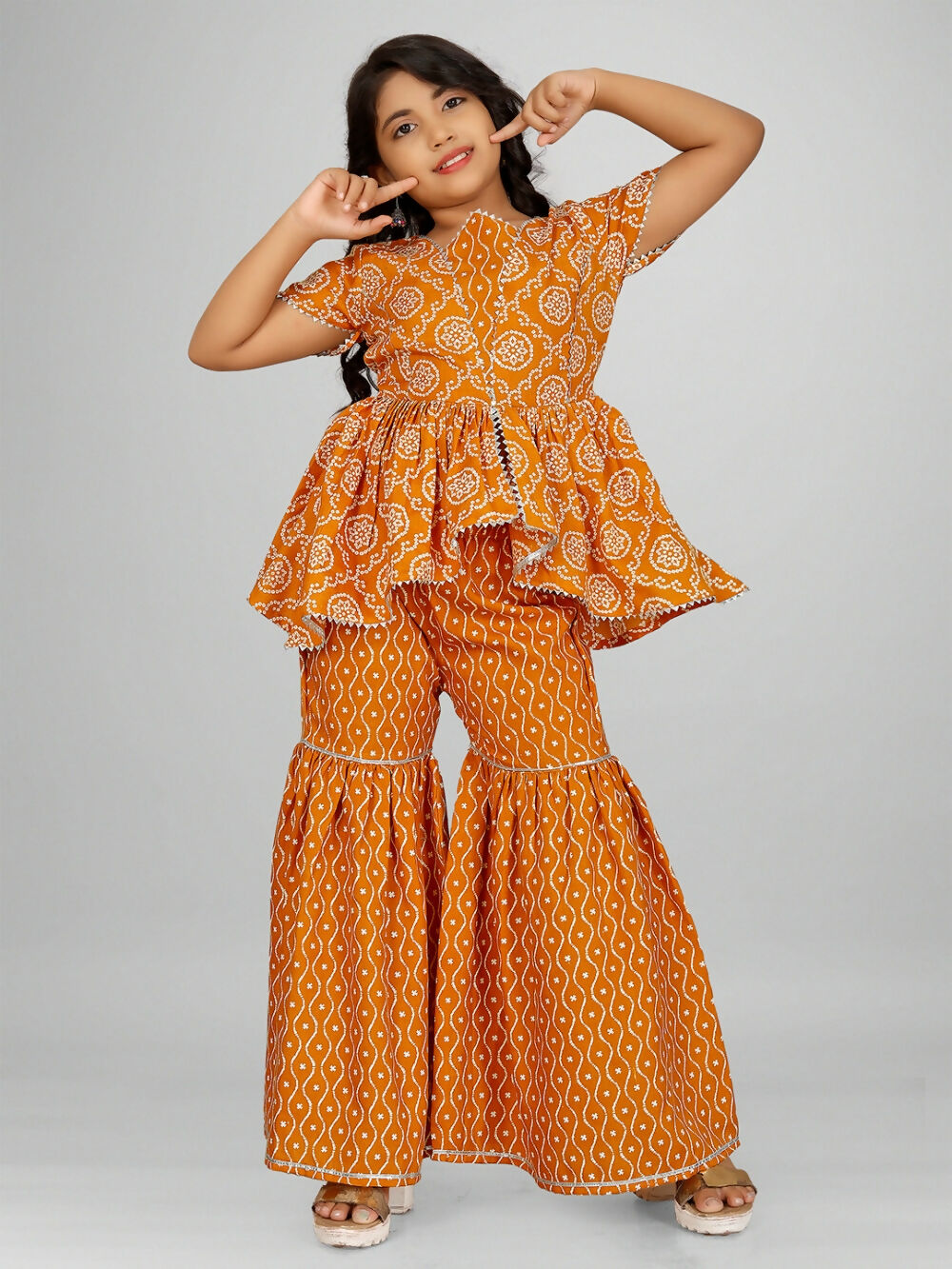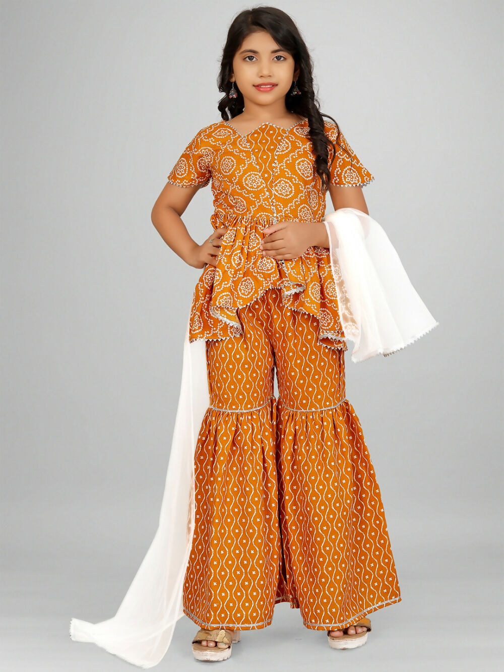 Divine Drape Girls Rayon Yellow Printed Straight Kids Kurta Sharara With Dupatta