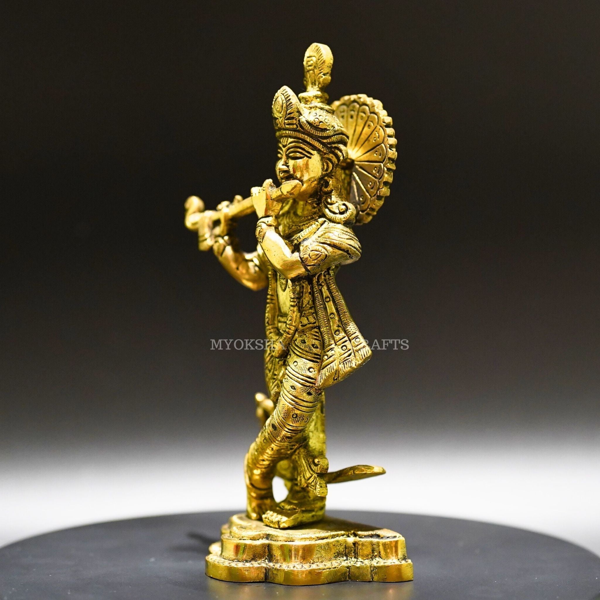 Divine Grace: Krishna Standing Brass Idol - Bringing the Spiritual Presence of Krishna