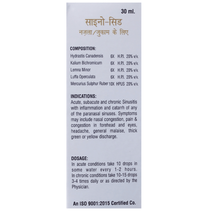 • Indications: Useful in acute, subacute and chronic sinusitis with inflammation and catarrh of any of the paranasal sinuses. Symptoms may include nasal congestion, pain & congestion in forehead and eyes, headache, general malaise, thick green or yellow discharge, the formation of polyps, feeling of facial 'fullness' or 'tightness' & dizziness.