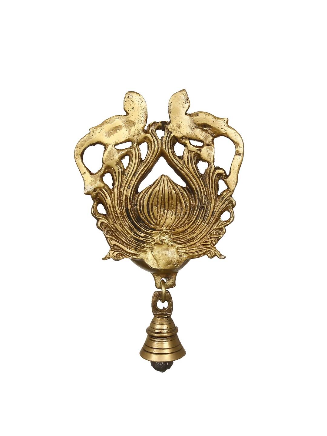 eCraftIndia Gold-Toned Handcrafted Antique Finish Diya with Bells Decorative Wall Hanging Showpiece