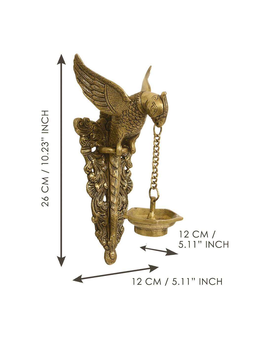 eCraftIndia Gold-Toned Handcrafted Bird Wall Hanging with Diya for 5 wicks