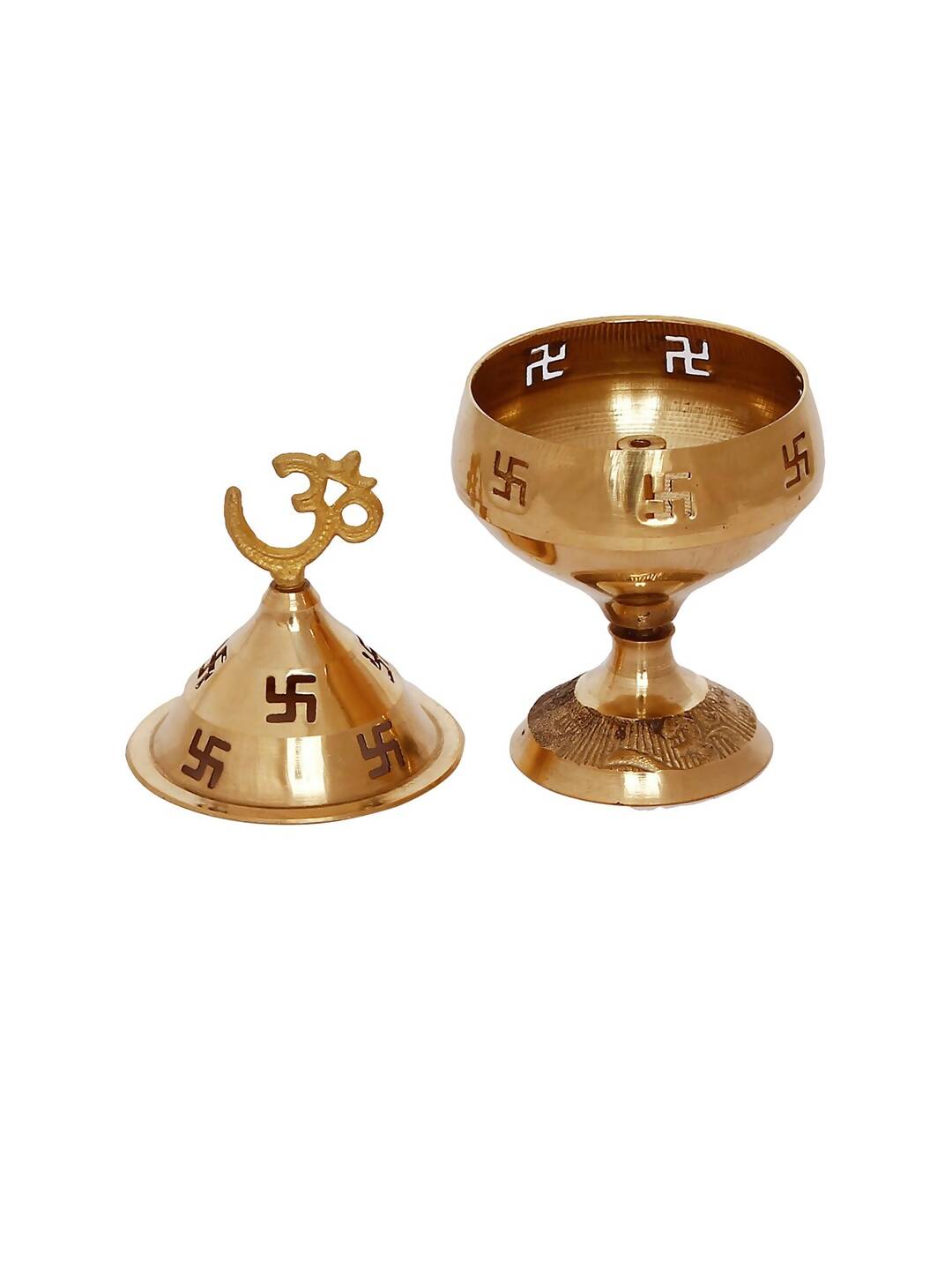 eCraftIndia Gold-Toned Om and Swastik Brass Diya