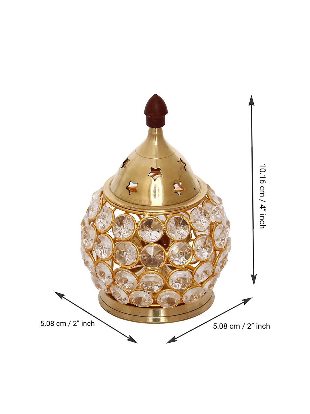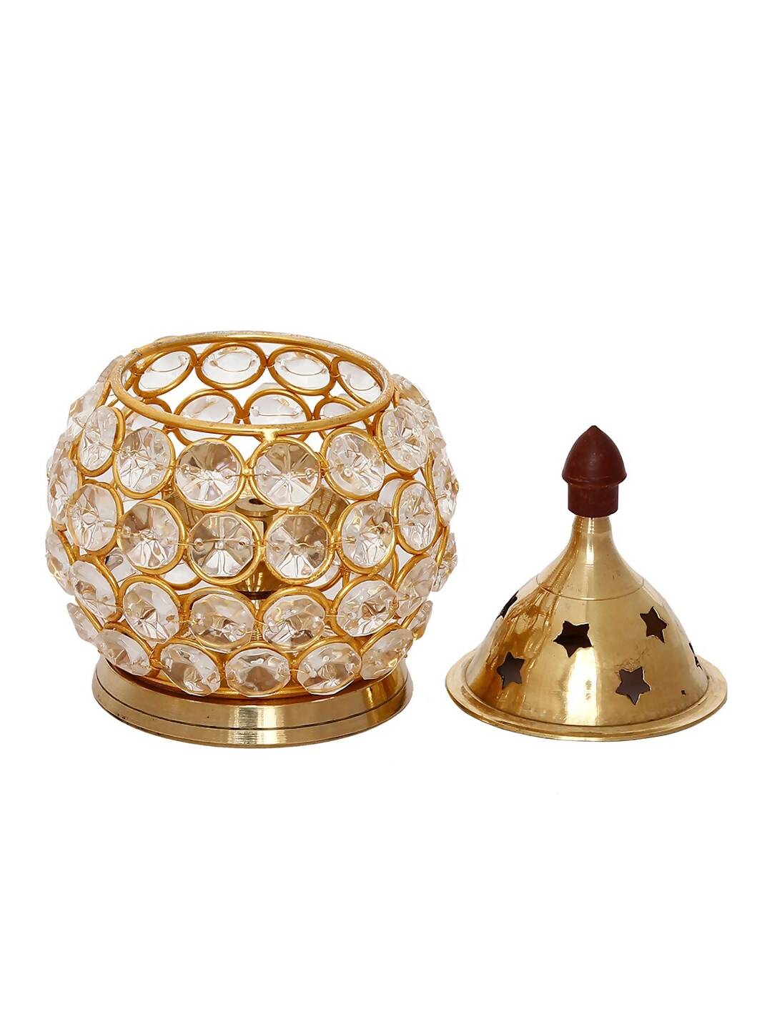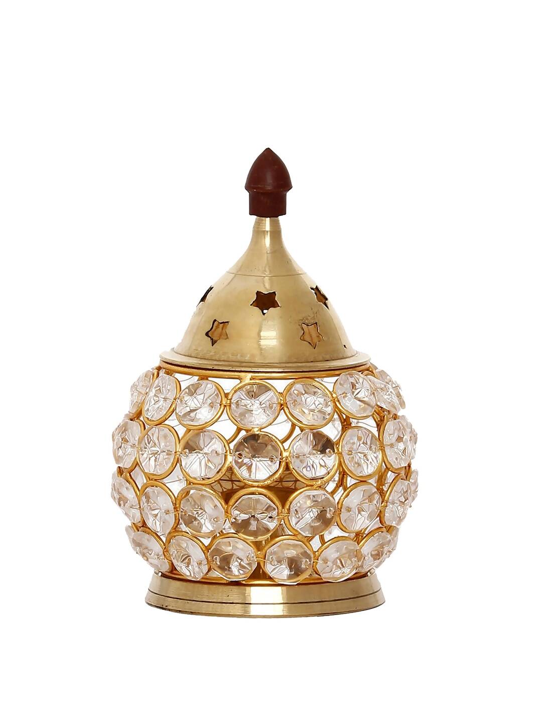 eCraftIndia Gold-Toned & Transparent Crystal & Brass Akhand Diya
