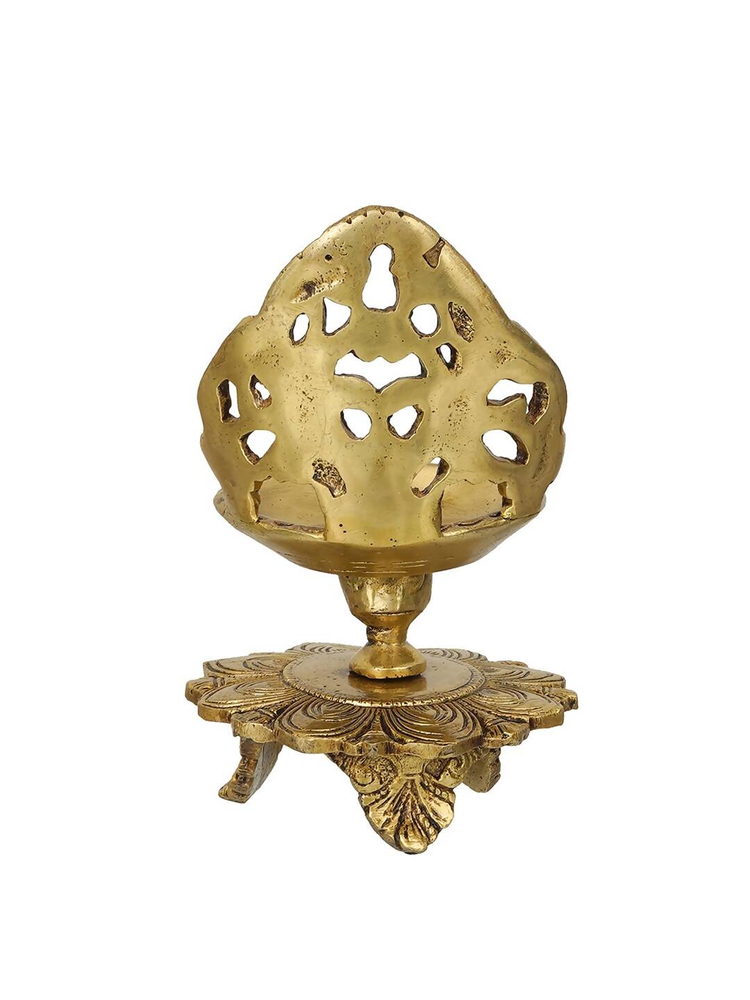 eCraftIndia Golden Decorative Handcrafted Brass Diya Stand