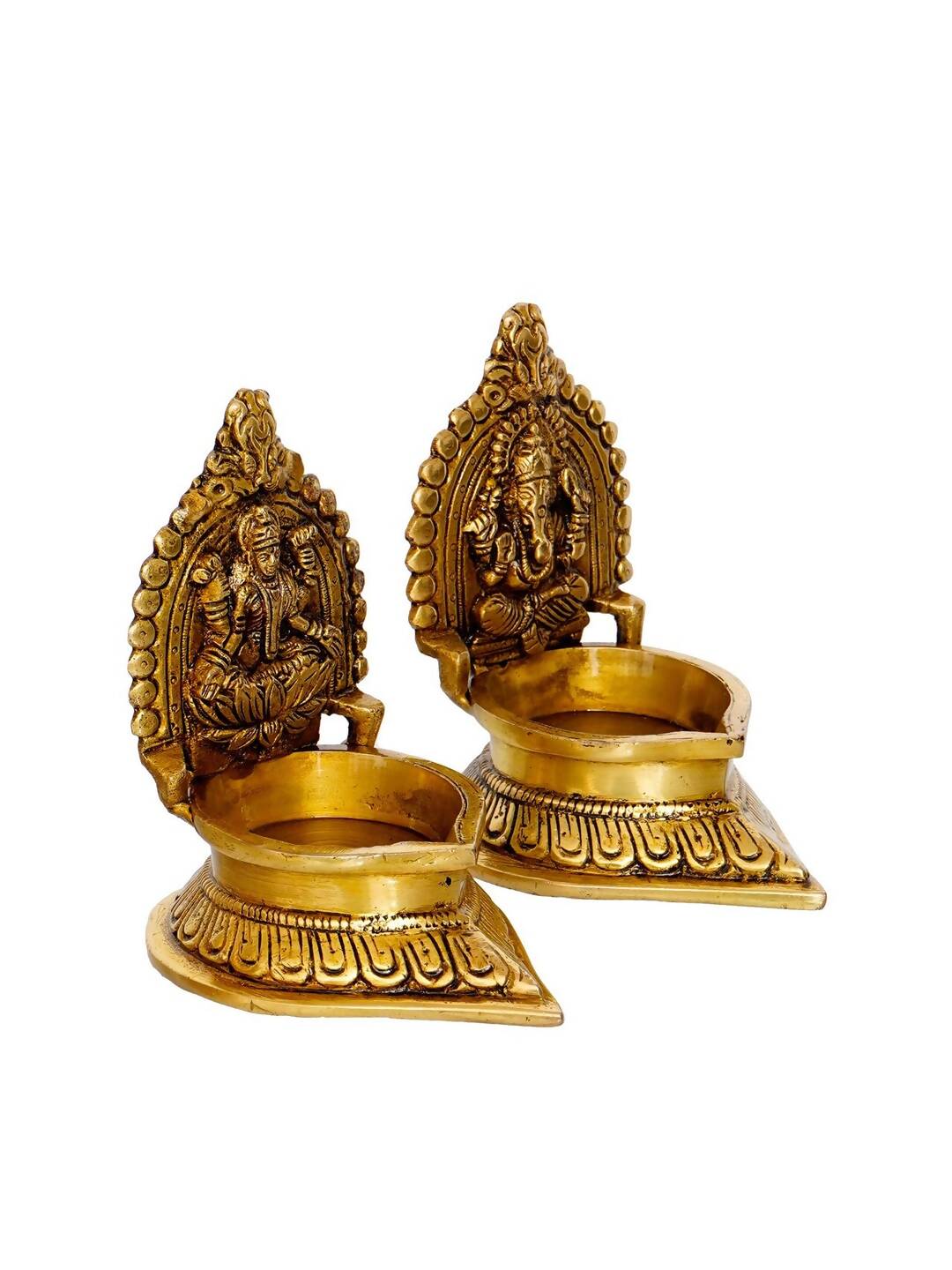 eCraftIndia Set of 2 Gold-Toned Handcrafted Brass Laxmi Ganesha Idol Deepak