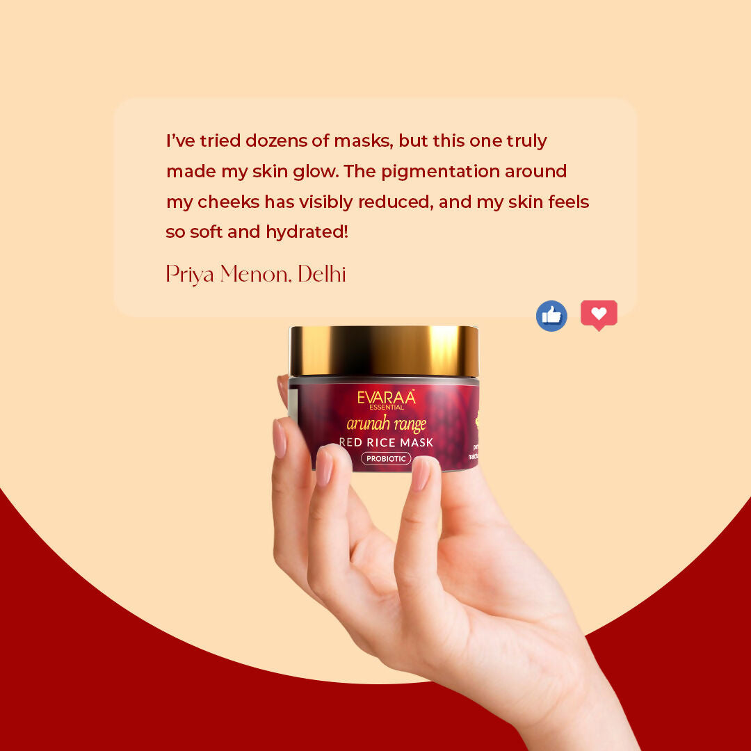 Evaraa Essential Red Rice Mask is a powder-based mask featuring Red Rice Ferment, Matcha, and other plant-based ingredients. It is designed for topical application to the face and neck and comes in a convenient, easy-to-mix form.