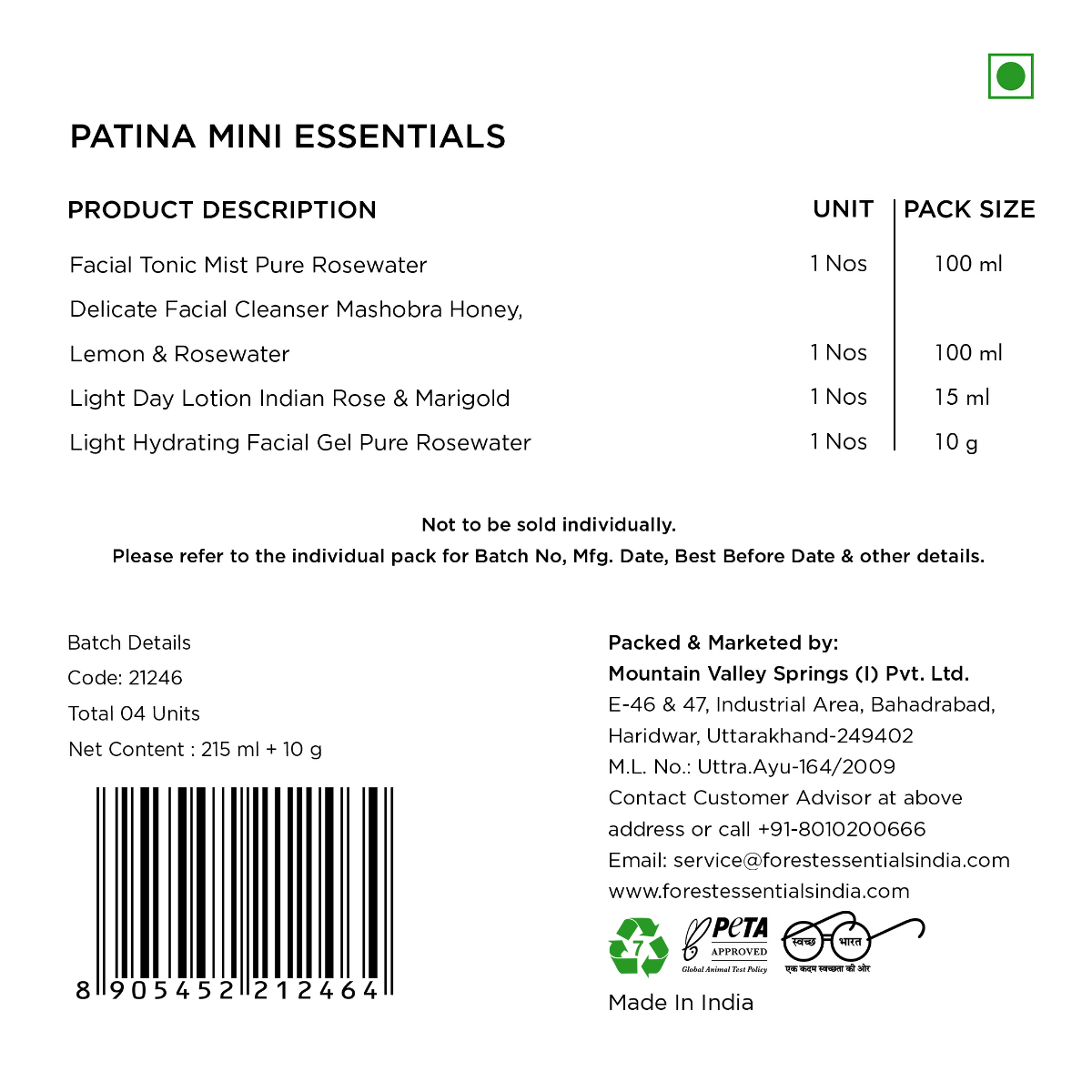 - Encased in gleaming Patinas on tones of the sunset in Monga silk with Minakari motifs, the Patina Gift Box contains everyday face care essentials enriched with the hydrating and fragrant Indian Rose.