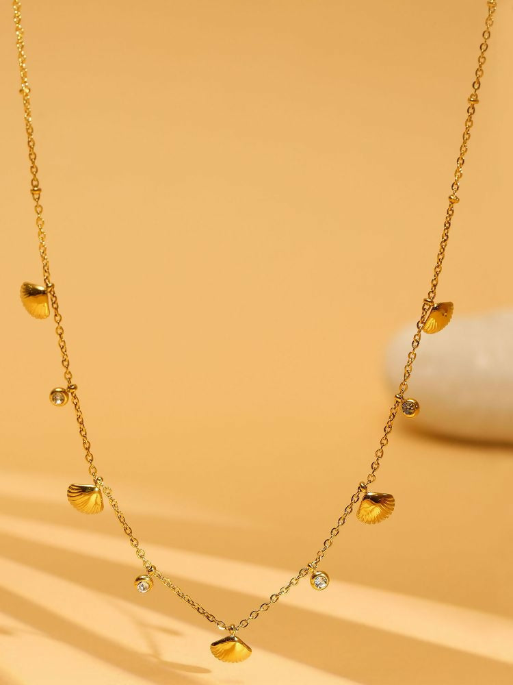 Elegant and timeless, Ruby Raang’s Gold Plated Necklace is the perfect example of radiant expression of refined craftsmanship. Designed in a rich, lustrous gold finish, this statement piece is delicately handcrafted with premium metal and finished with high-quality gold plating for lasting brilliance. Whether adorned with subtle gemstones or left minimal for a classic look, the necklace brings effortless grace to any neckline. Lightweight and versatile, it transitions seamlessly from daytime charm to evening sophistication. A must-have for the modern jewelry lover. Style tip: Pair it with a deep V-neck or off-shoulder ensemble to highlight its golden glow.