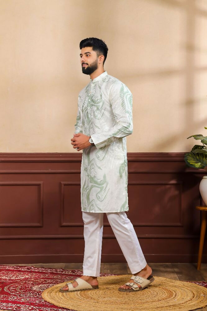 Green Art Silk Digital Printed, Embroidery Work Kurta Set - Mahotsav