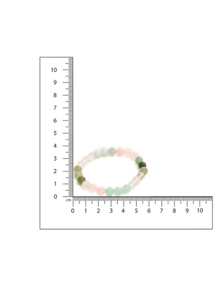 Soft, serene, and effortlessly elegant is what comes to mind when wearing the Ruby Raang’s Green Avanturine, Clear Quarts, Amethyst Pastel Shade Crystal Bracelet, crafted from a delicate blend of crystals in soothing pastel hues. Each polished bead exudes a calming charm, believed to promote inner peace, emotional balance, and gentle energy. The subtle tones of blush pink, lavender, mint, ivory and clear beads are beautifully strung on a high-quality elastic cord, offering a snug and flexible fit. Perfect for daily wear or as a thoughtful gift, this bracelet adds a whisper of color and grace to any outfit. Style tip: Pair with linen or flowy fabrics for an airy, ethereal look.