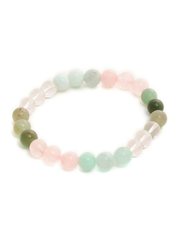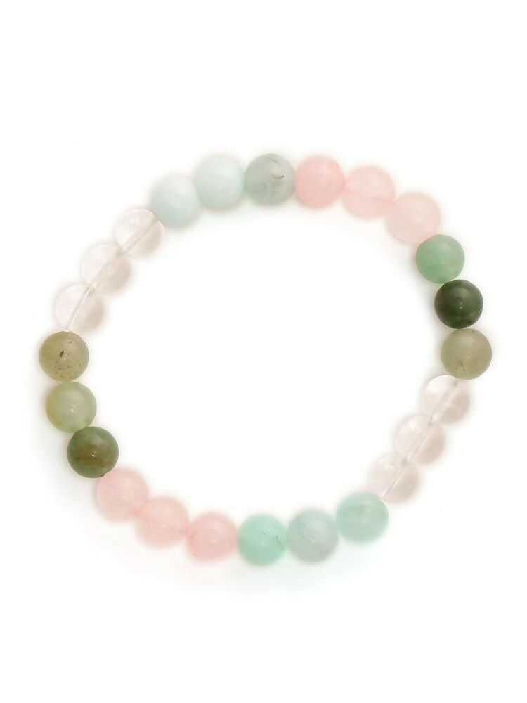 Green Avanturine, Clear Quarts, Amethyst Multicoloued Pastel Shade Crystal Bracelet - Ruby Raang