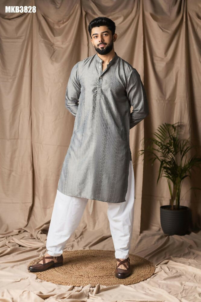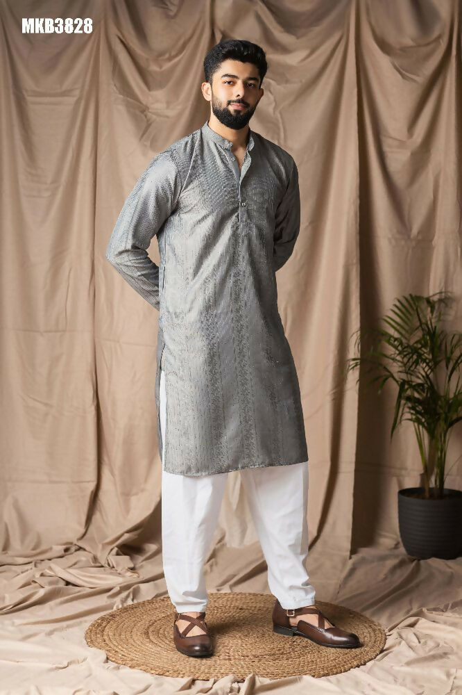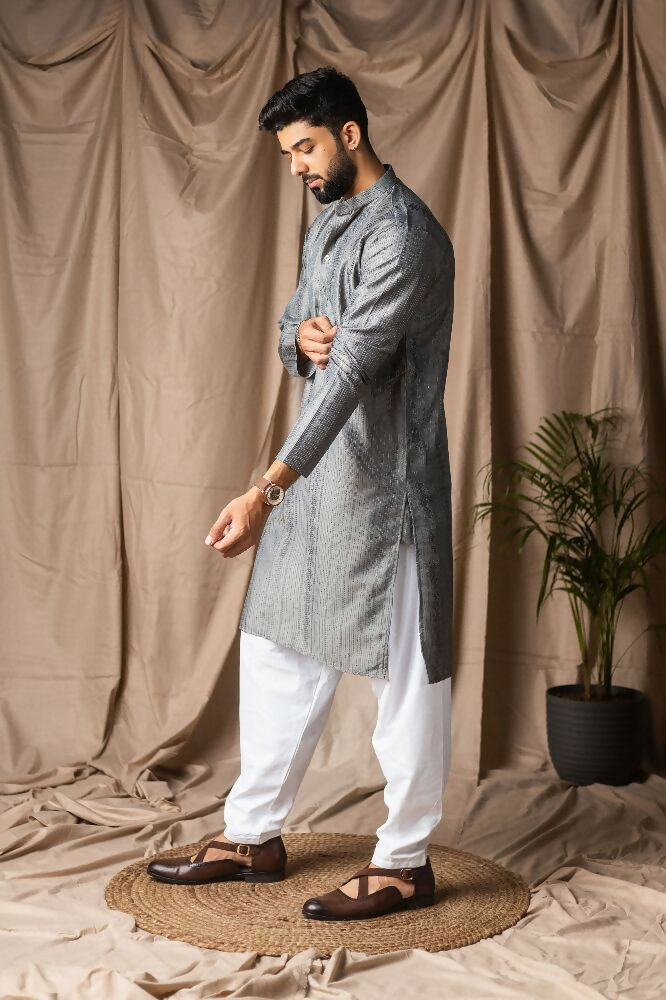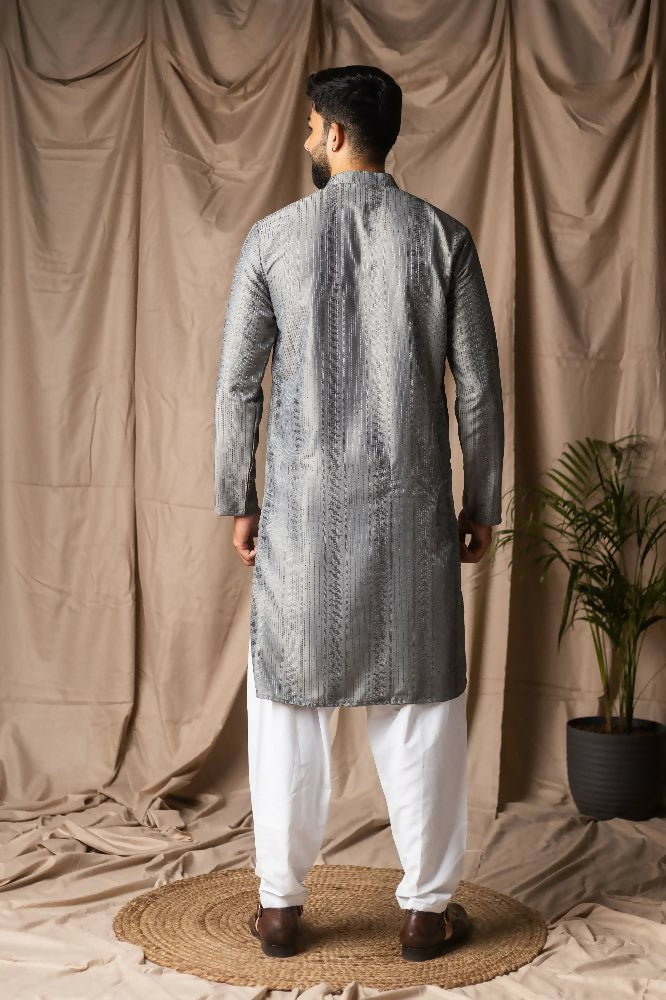 Grey Rayon Thread Embroidery Work Kurta Set - Mahotsav