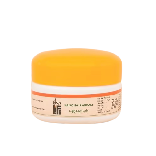 In Siddha medicine, the prevention of diseases is given much importance. One way of doing so is by taking regular baths with Pancha Karpam powder which keeps the body cool as it maintains the overall health of skin and scalp. Contains: Kasthuri Manjal (aromatic turmeric), Milagu (pepper), Vembin Vithu (seed of neem), Kadukkai Thol (skin of terminalia chebula fruit), and Nelli Paruppu (gooseberry seed).