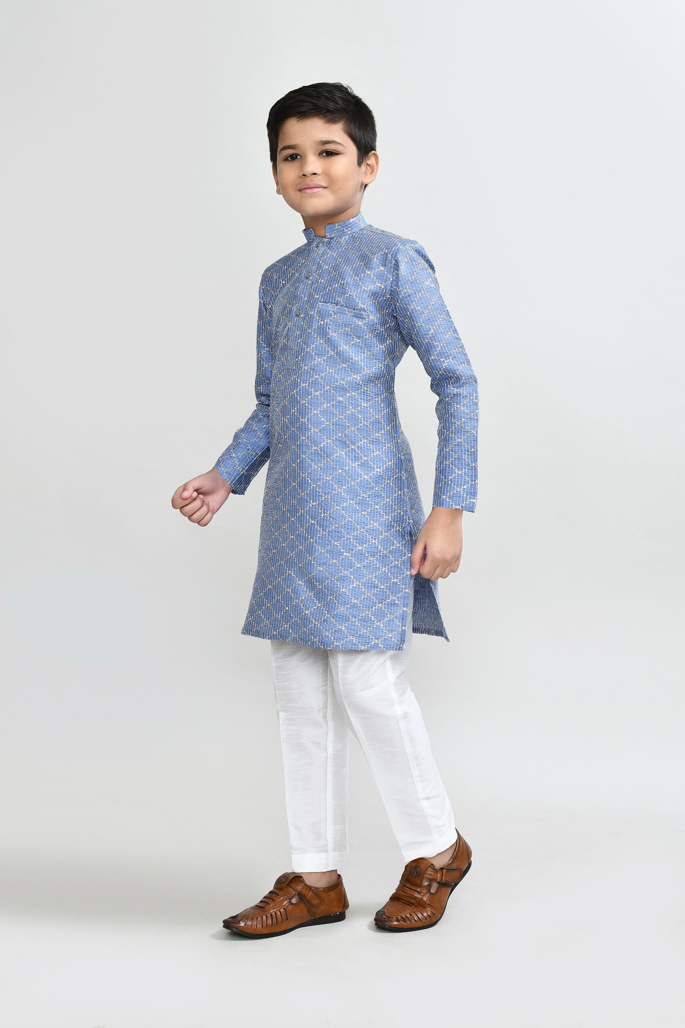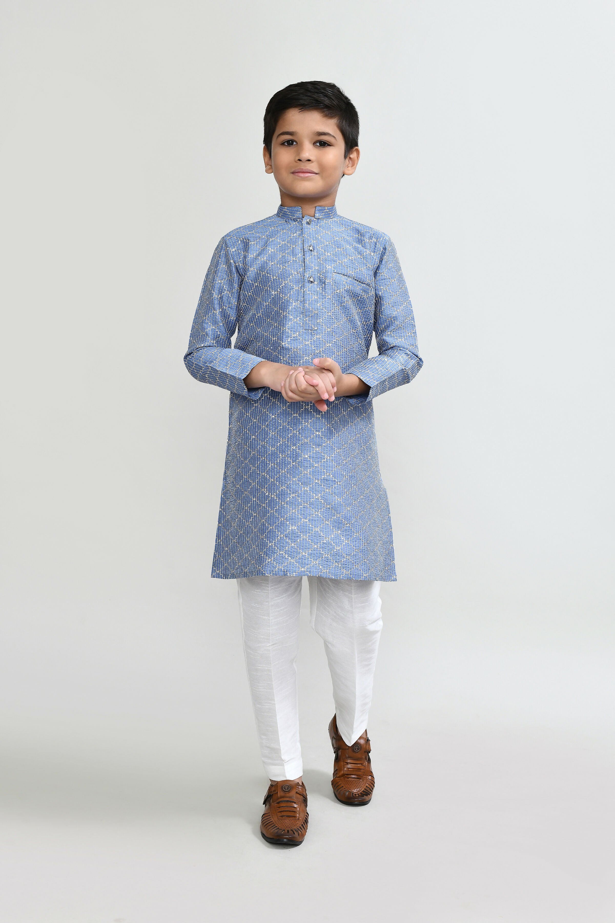 Joban Fashion Art Silk Blue Kurta With Straight Fit Pant